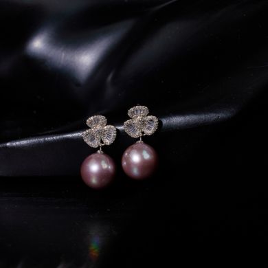 Hongqiao Pearl, Freshwater Pearl Earrings, Inlaid with Green Zircon, Vintage Heart Style HQEH01003 $449.00