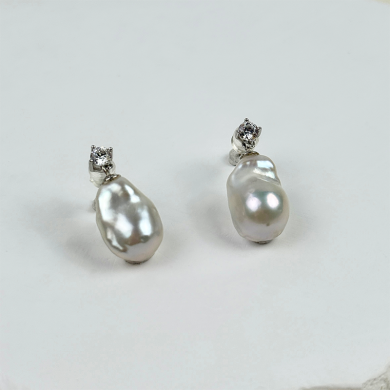 红桥珍珠 淡水有核巴洛克珍珠耳钉耳饰不规则异形