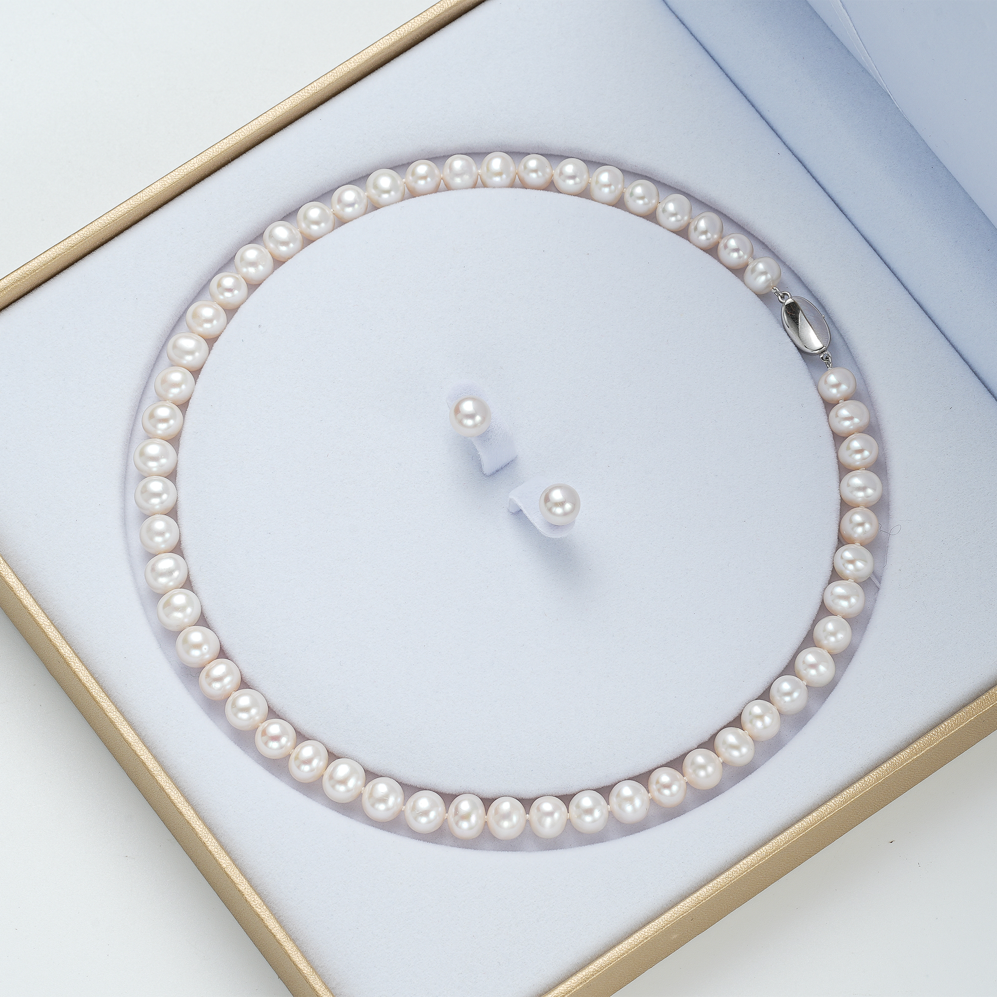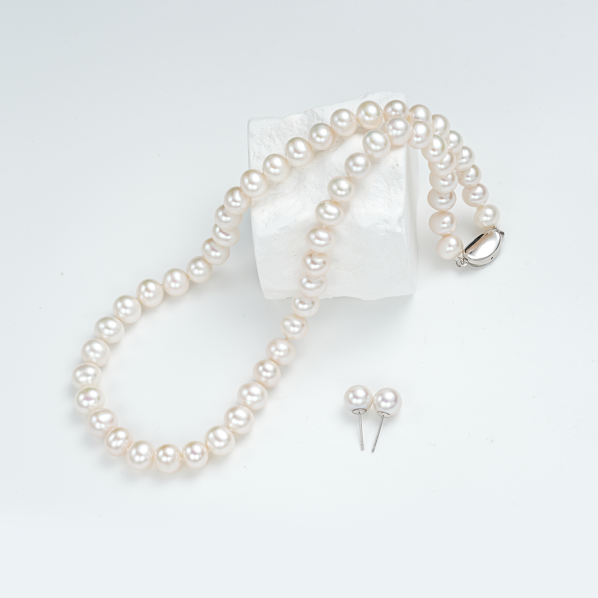 红桥市场 红桥珍珠 天然淡水珍珠项链串链配耳钉S925 HQXA-91085