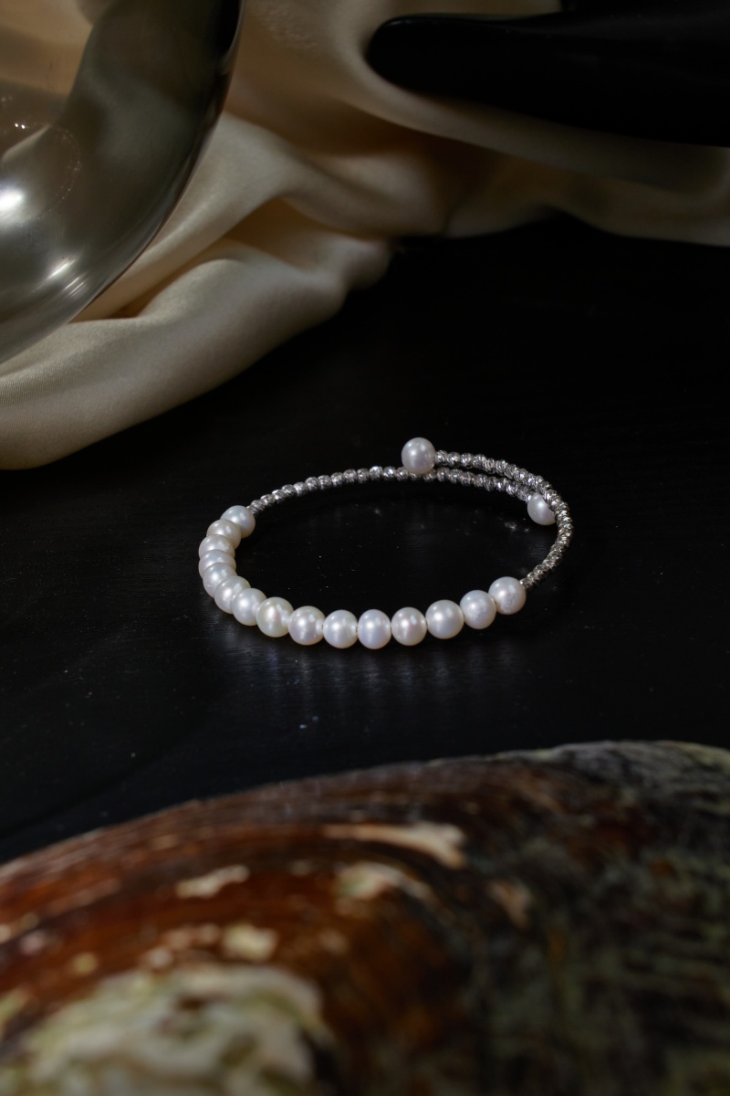 Hongqiao Pearl, Freshwater Pearl Bracelet,Single-Loop Spring Style, Alloy P777