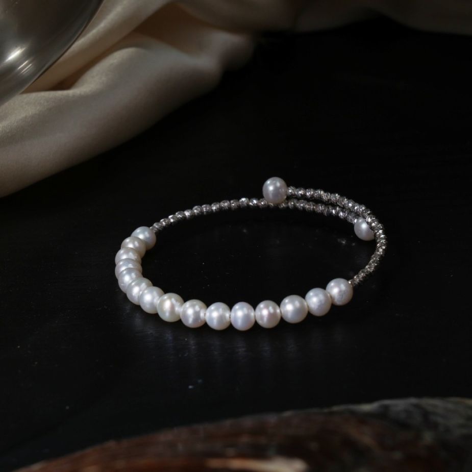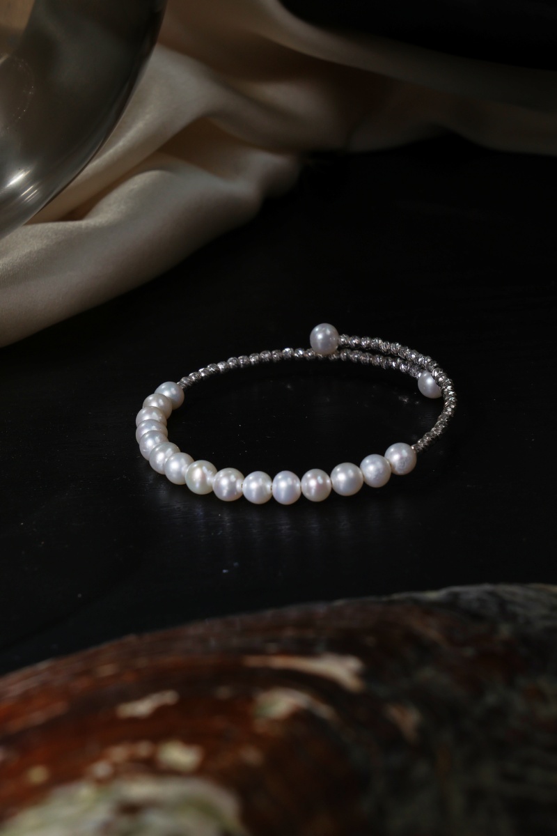 Hongqiao Pearl, Freshwater Pearl Bracelet,Single-Loop Spring Style, Alloy P777