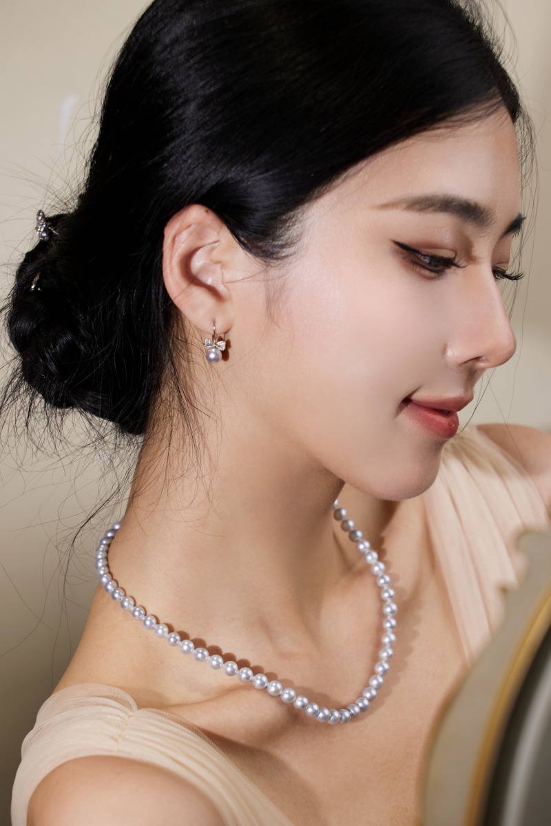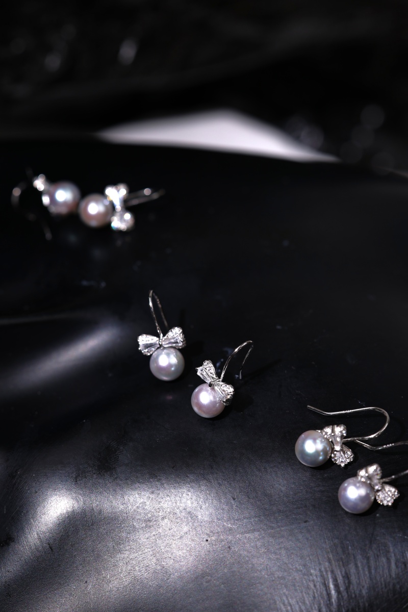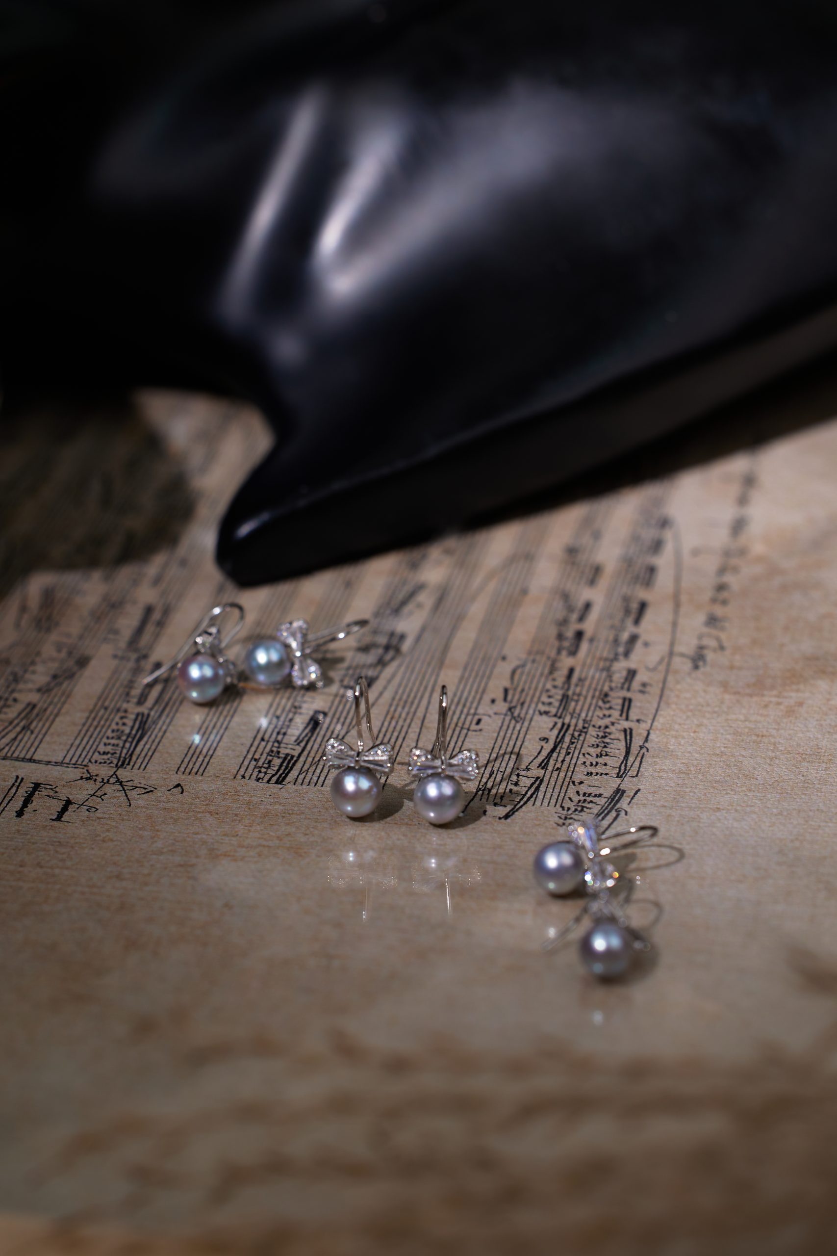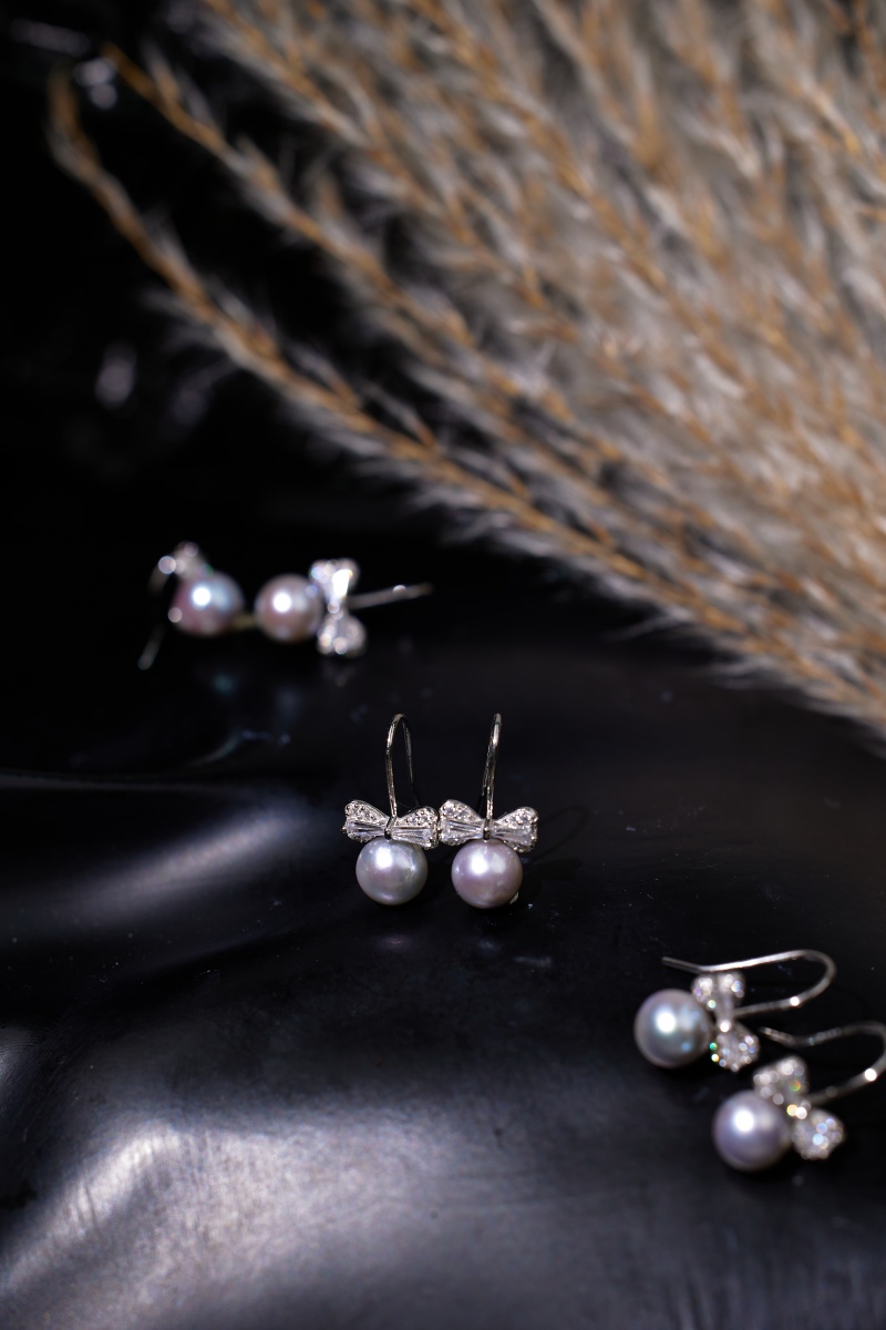 Hongqiao Pearl, Akoya Pearl Earring Hook, Silver-Blue Gray, Bow Style P365