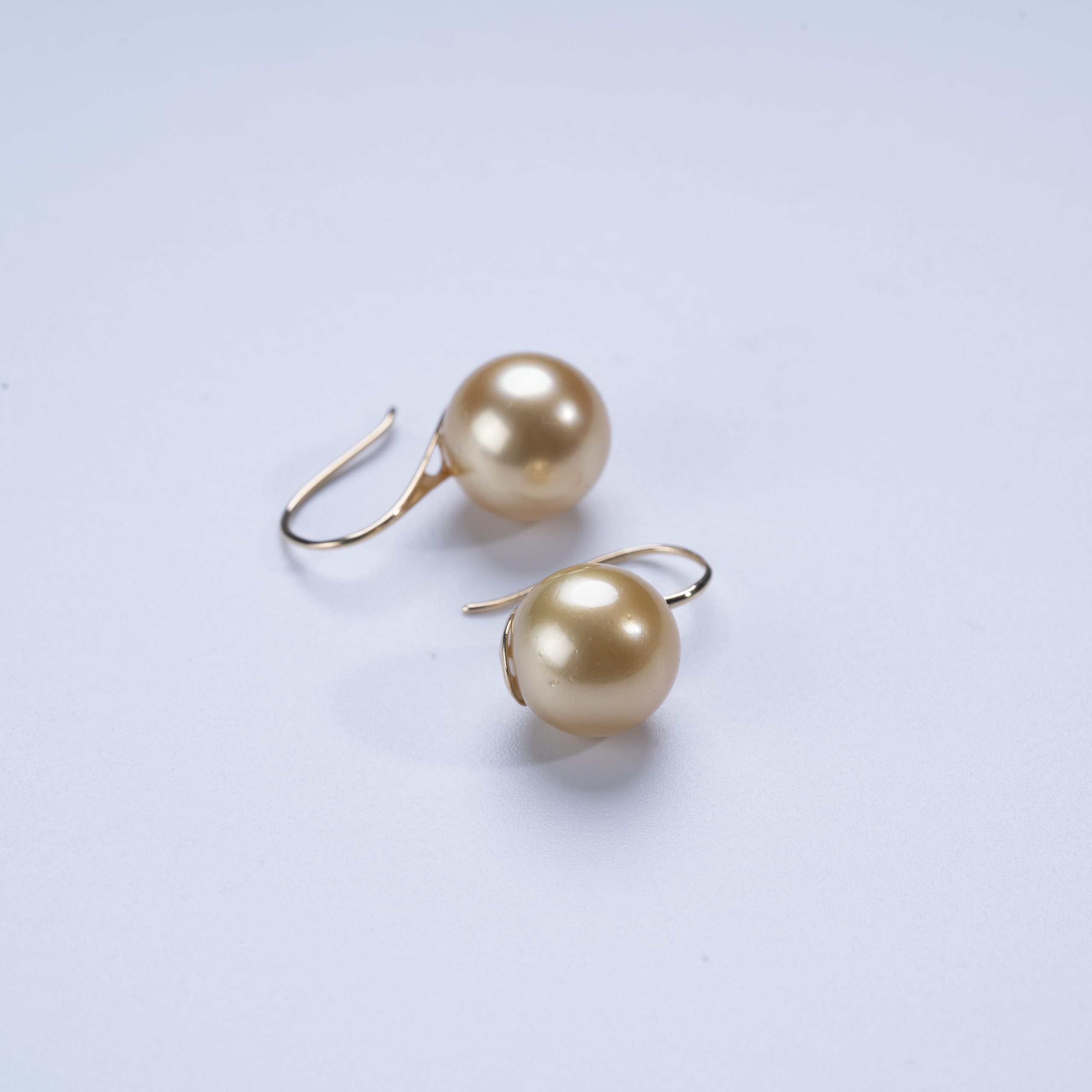 Hongqiao Pearl, Golden South Sea Pearl Hook Earrings, 18K Gold P1256