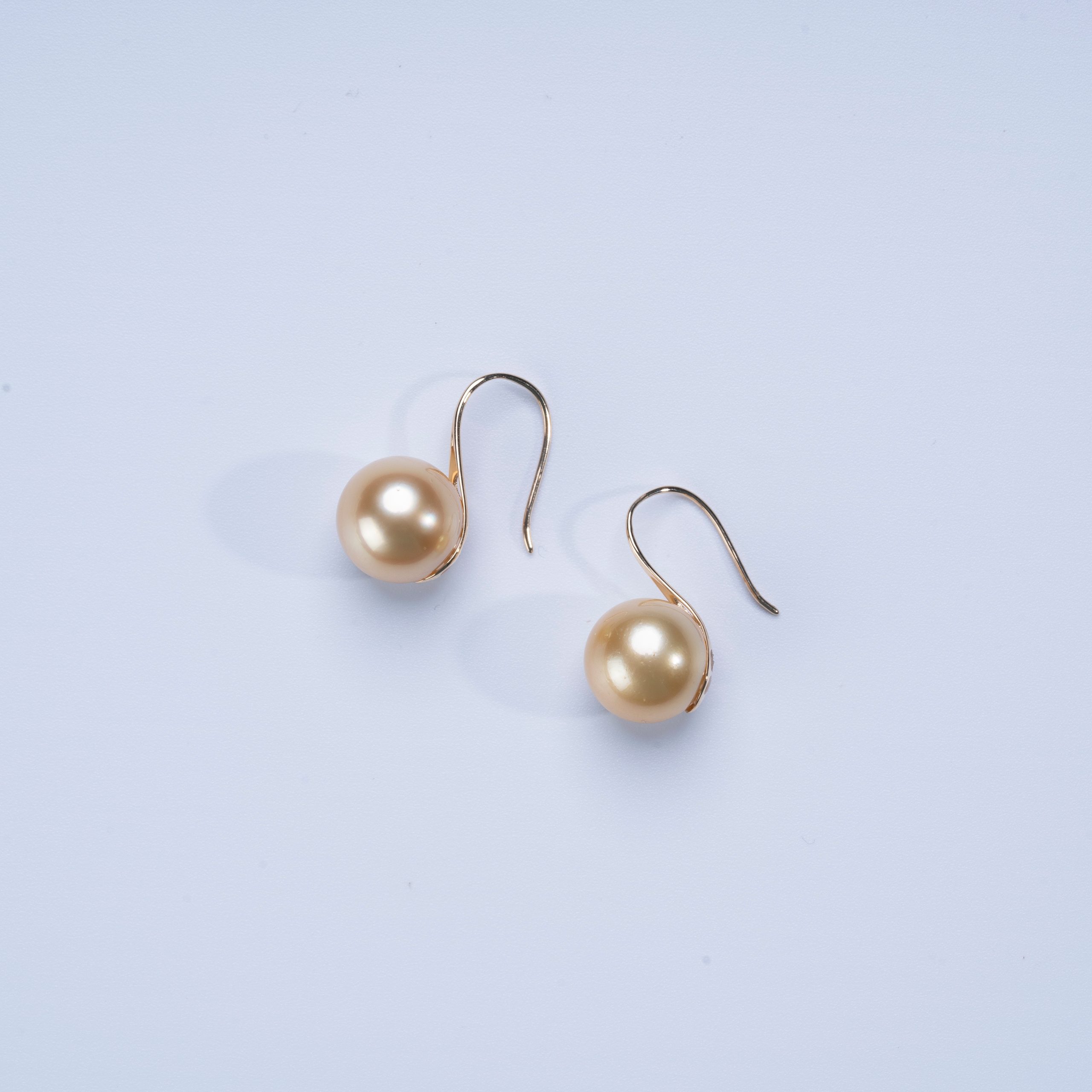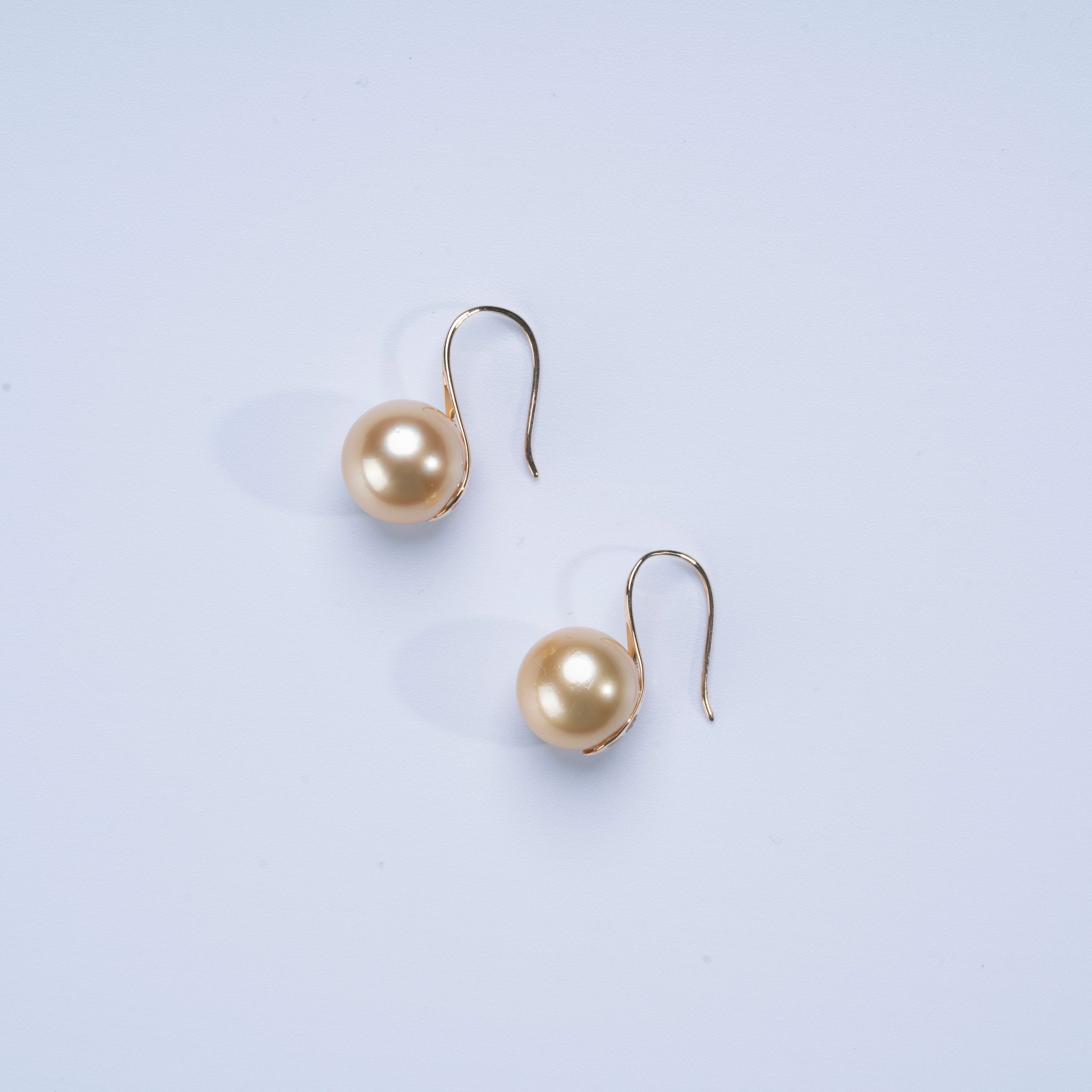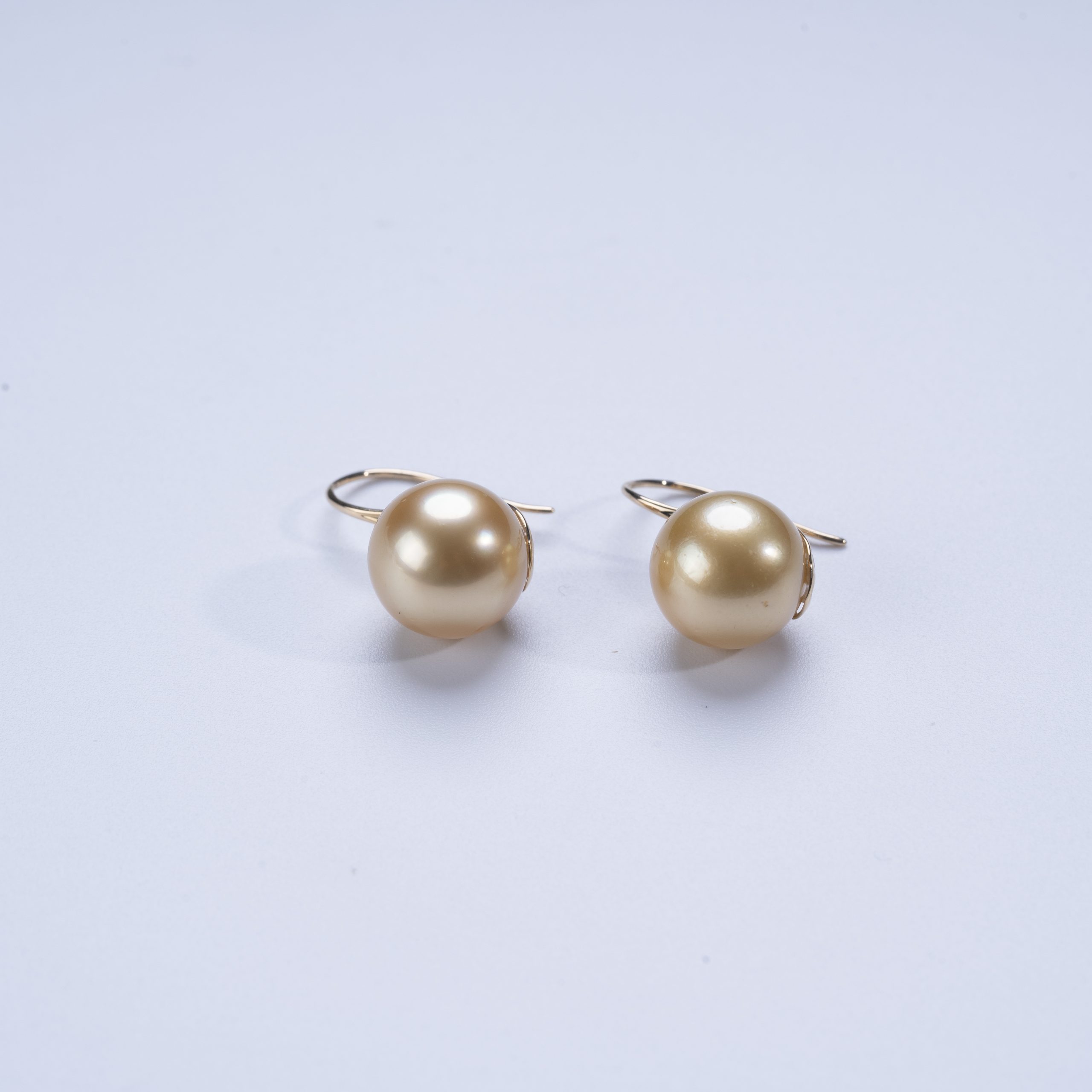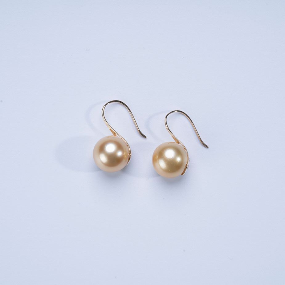 Hongqiao Pearl, Golden South Sea Pearl Hook Earrings, 18K Gold P1256