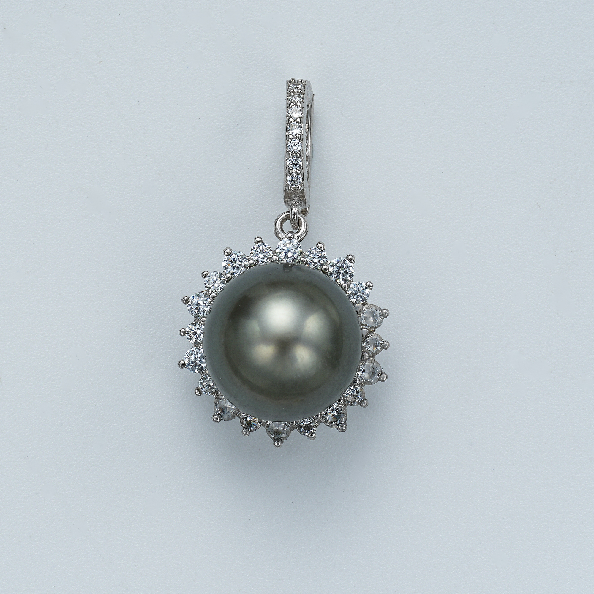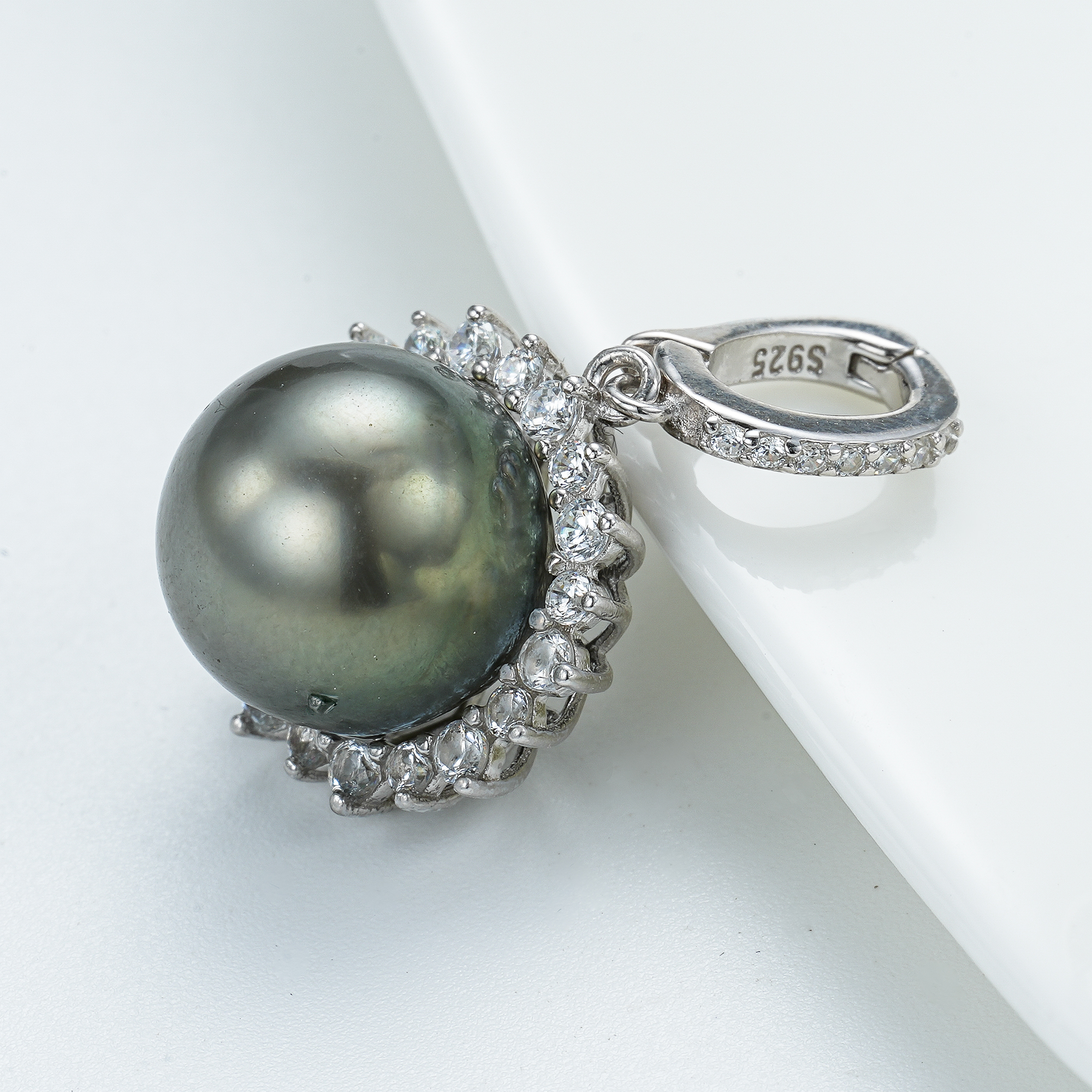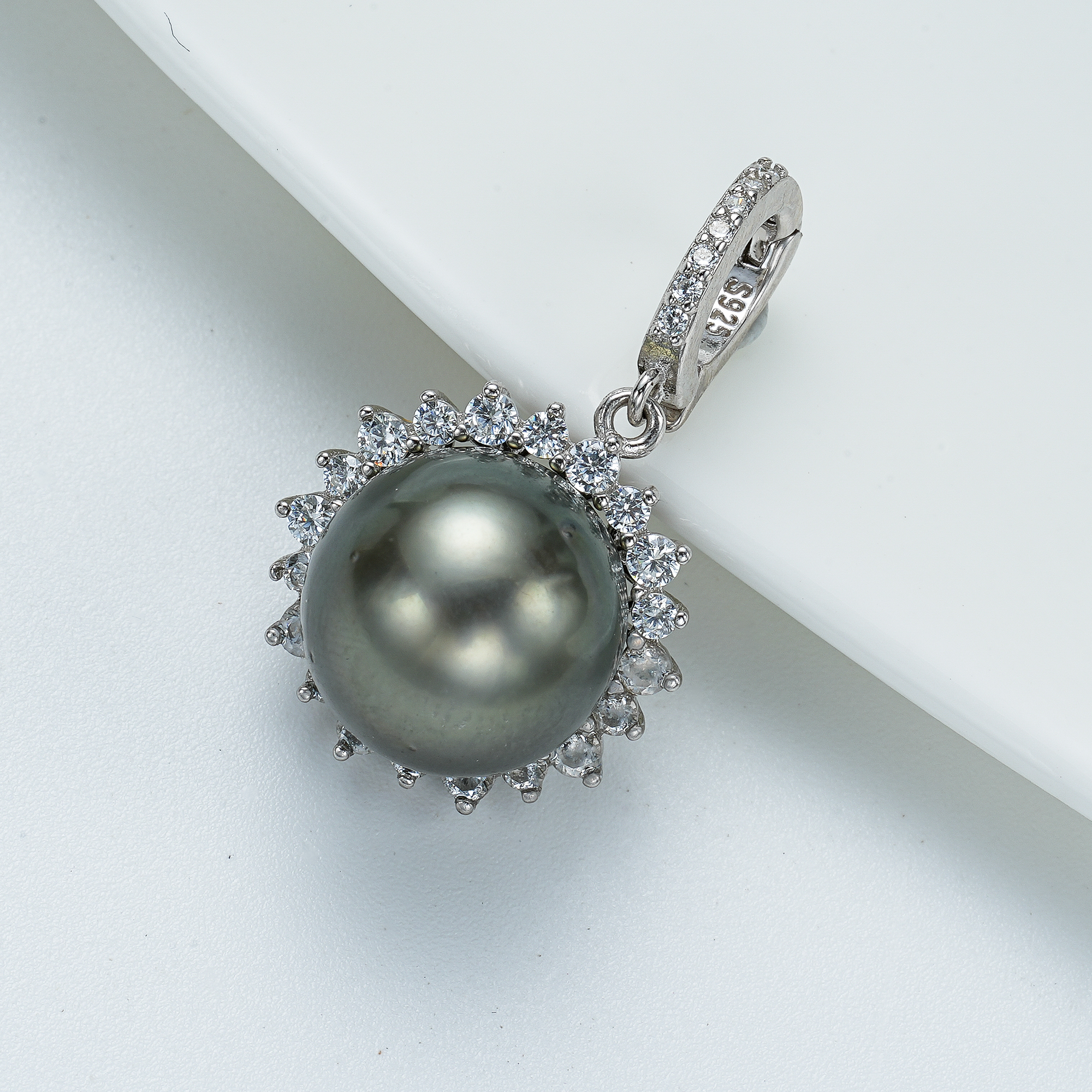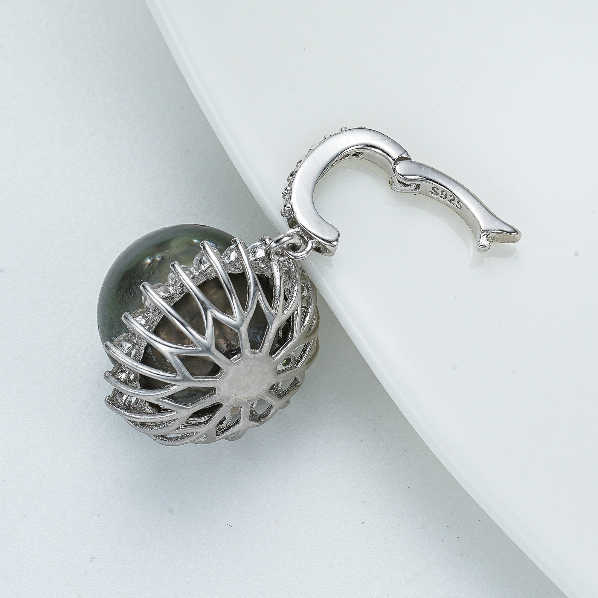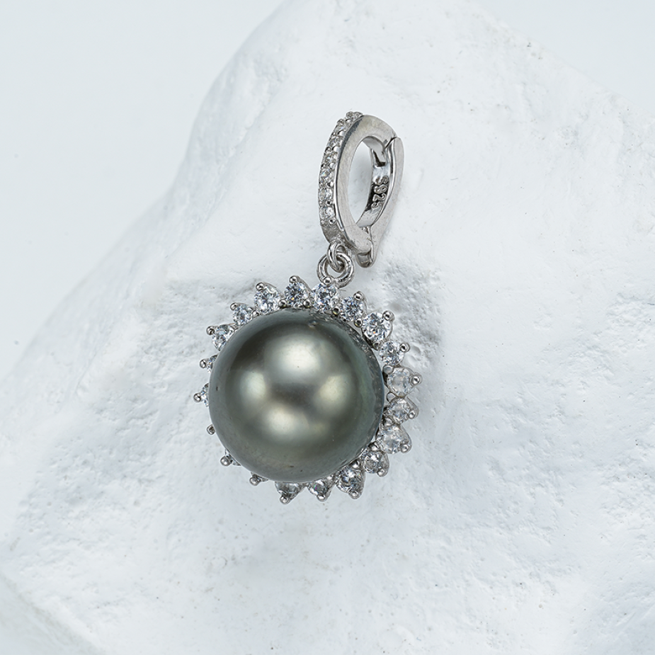 红桥珍珠 海水大溪地太阳花珍珠吊坠S925银镶锆石 HQXAD-24067
