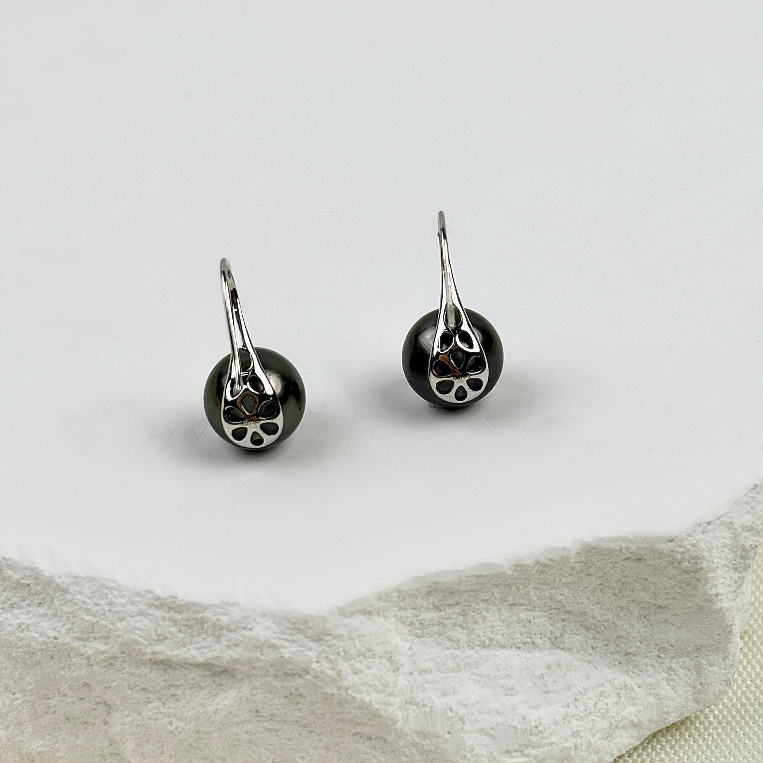 Hongqiao Pearl, Tahiti Pearl Hook Earrings, 18K White Gold P1131