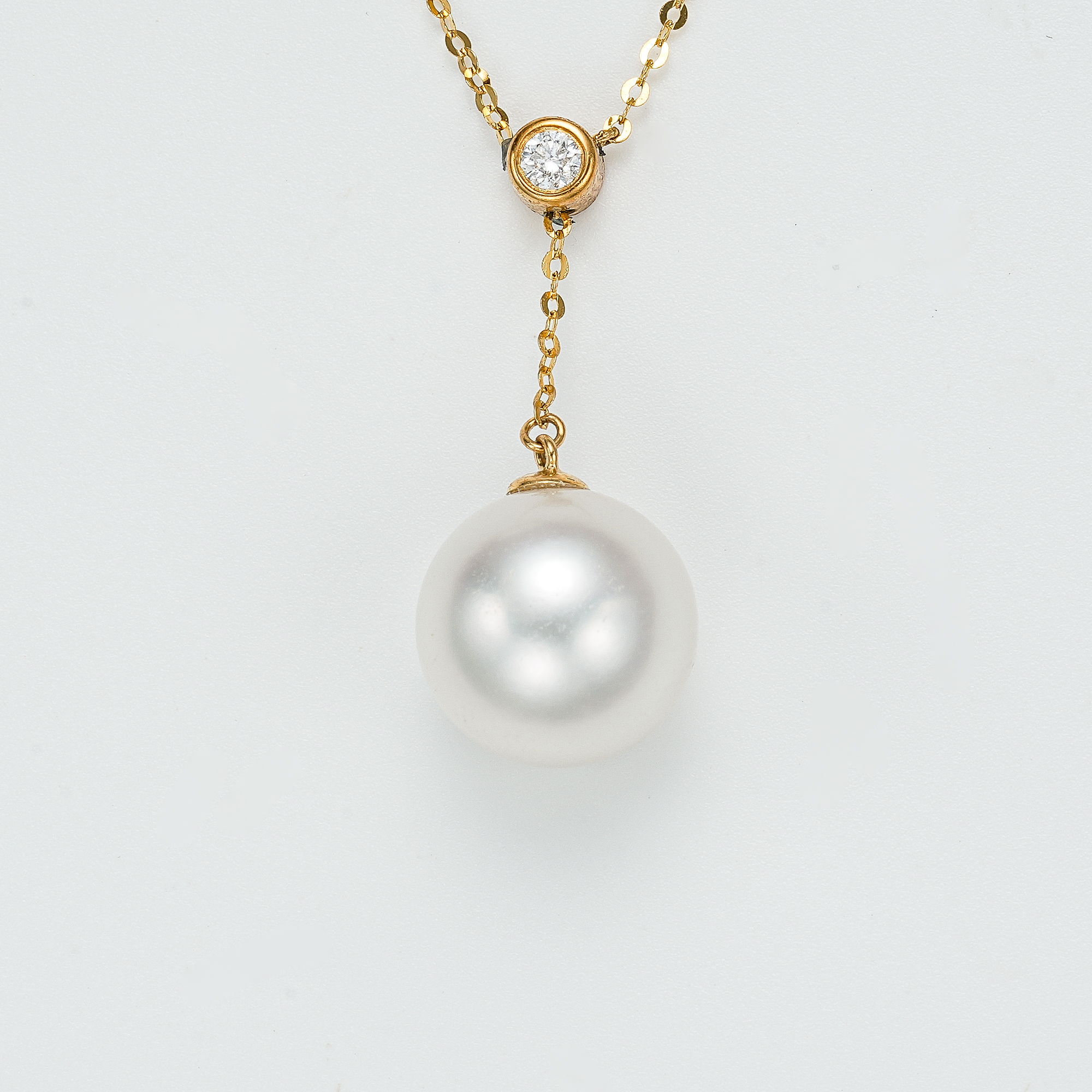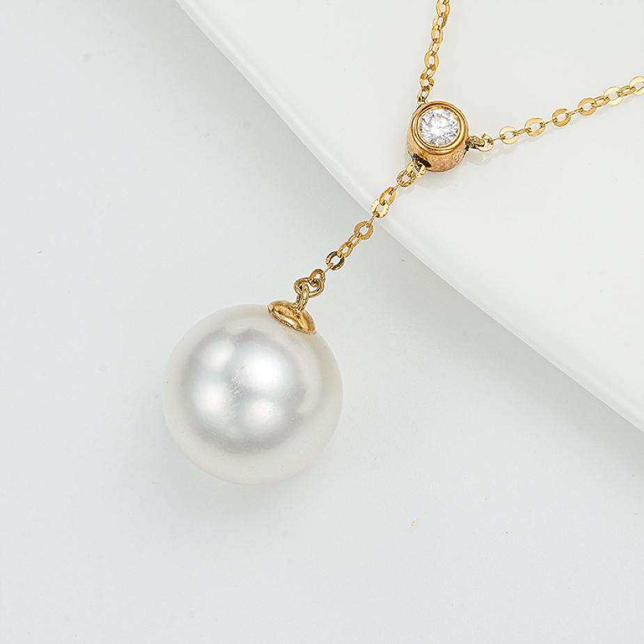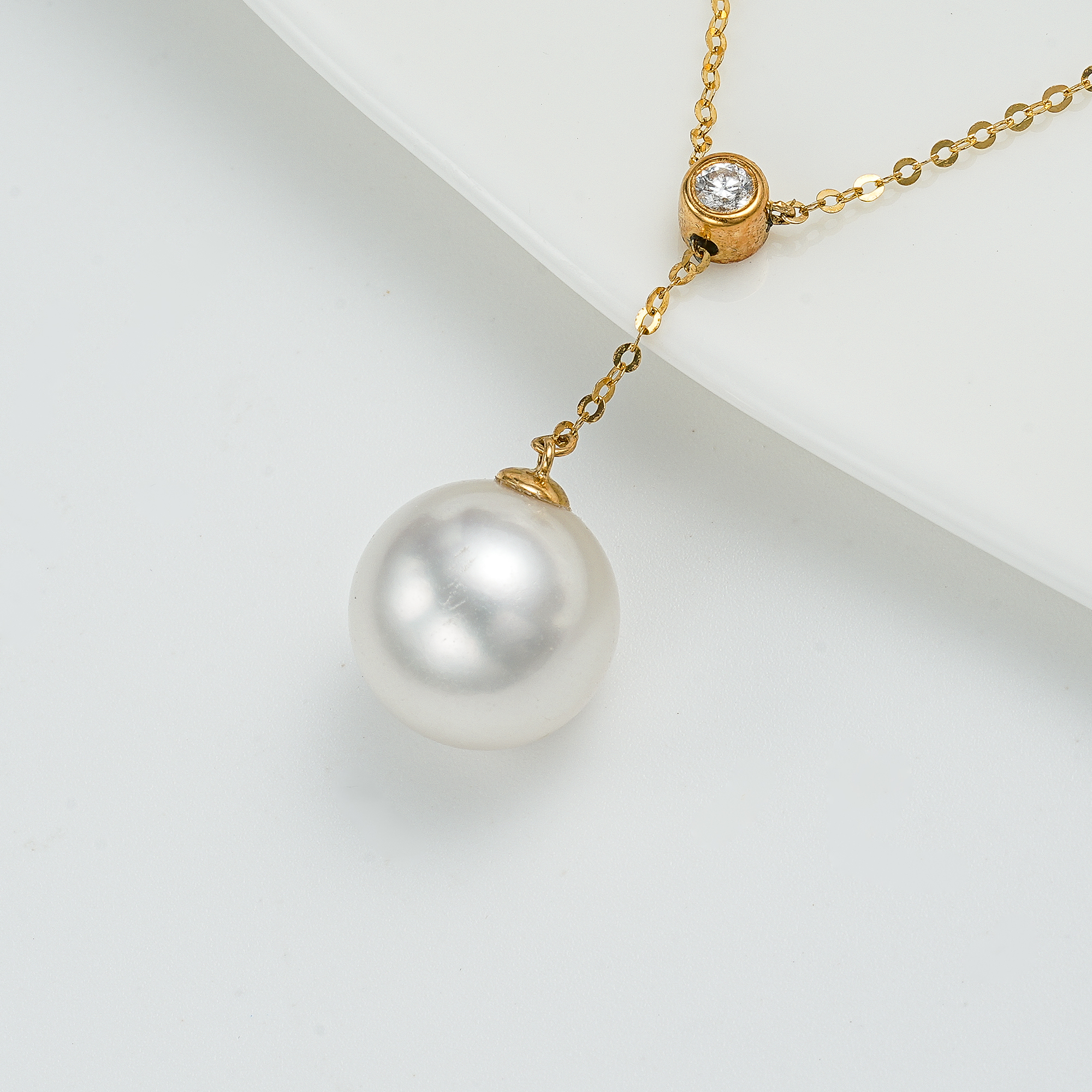 红桥珍珠 海水澳白珍珠Y字链项链吊坠18K金 HQXD-21237