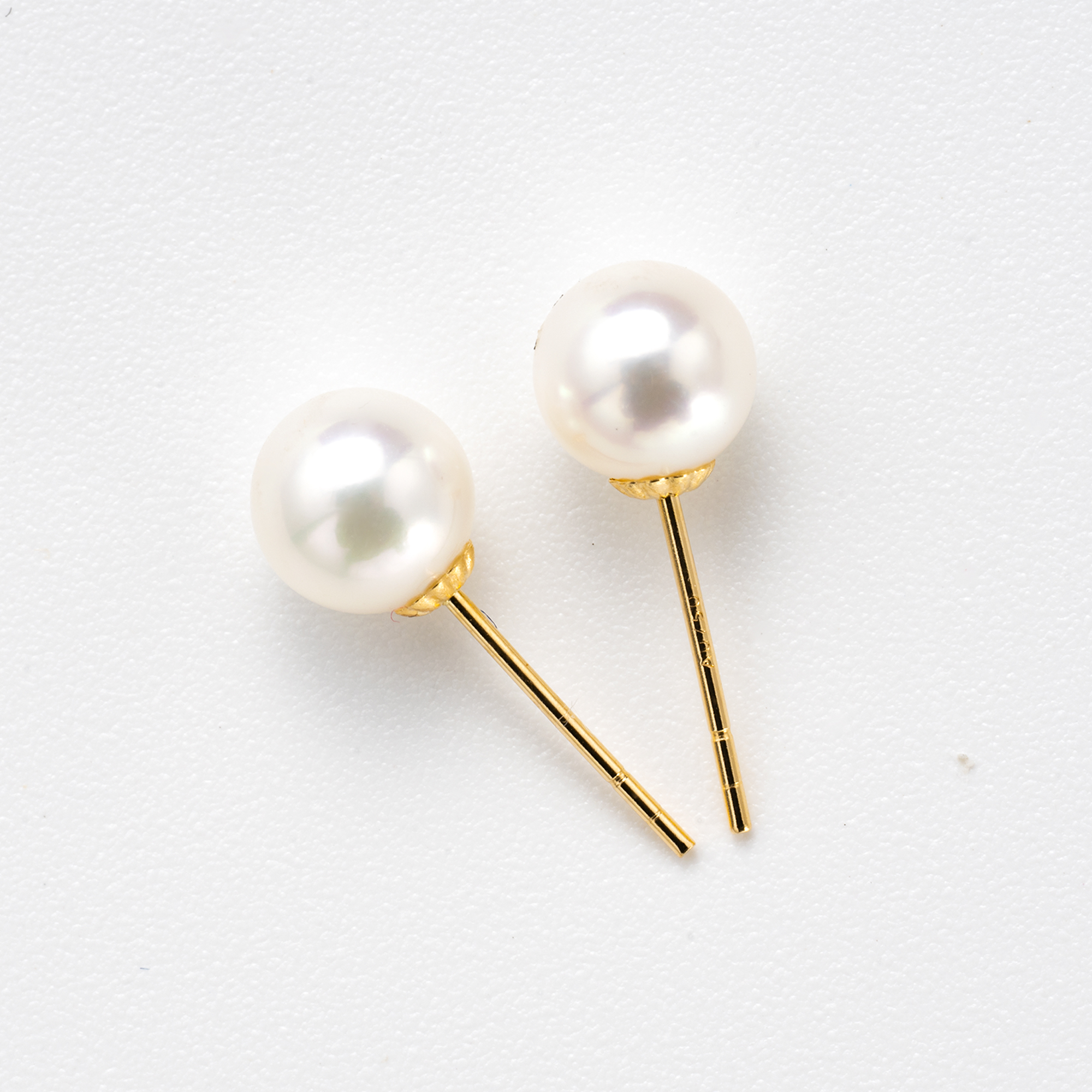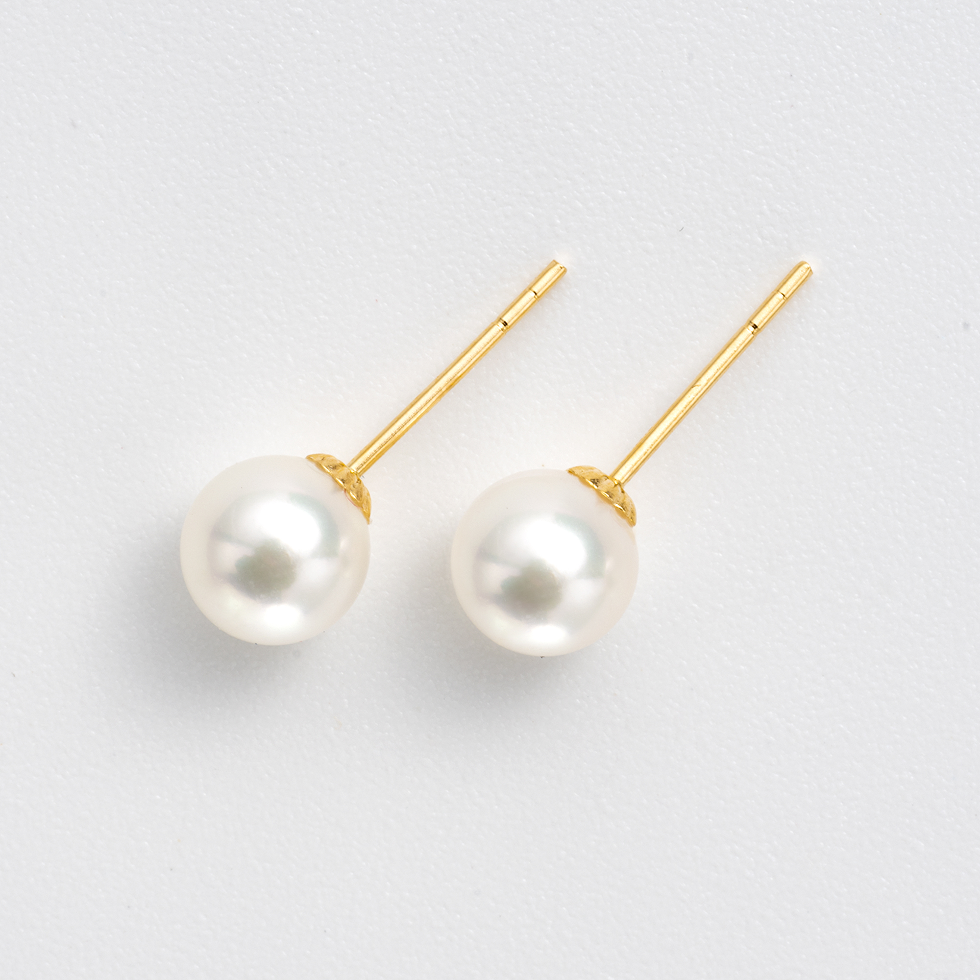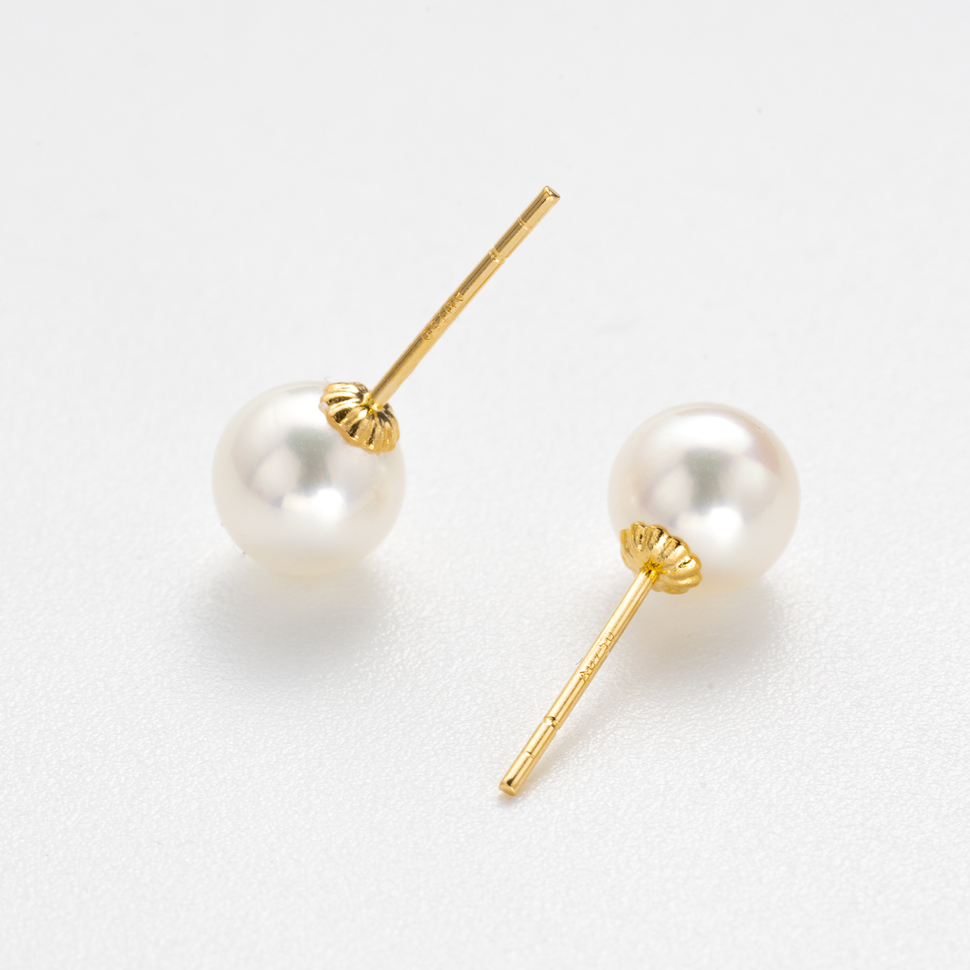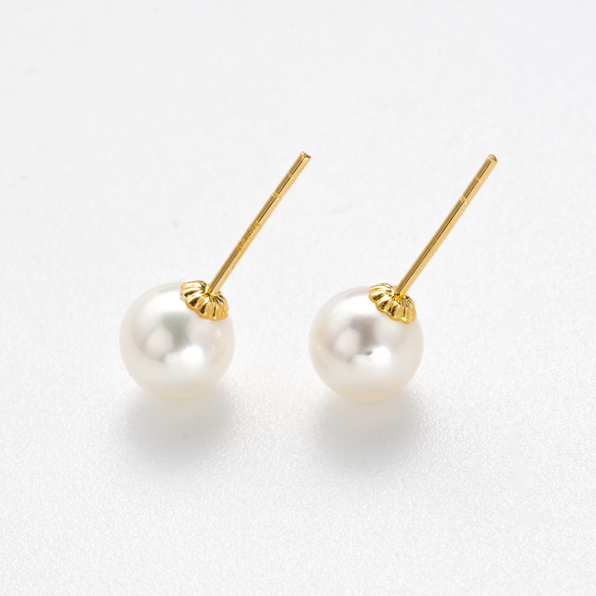 红桥珍珠 海水akoya珍珠素钉耳钉18K金简约百搭