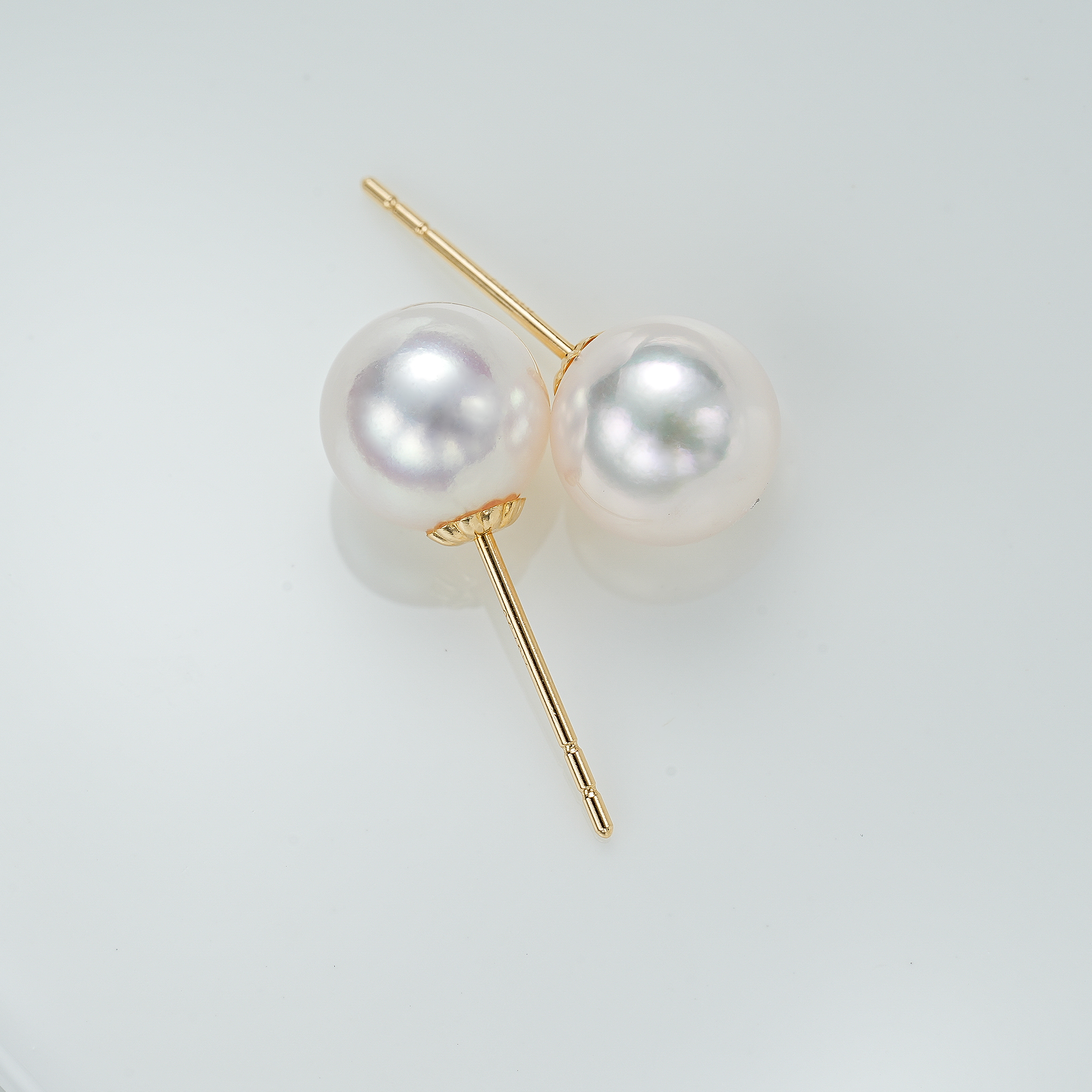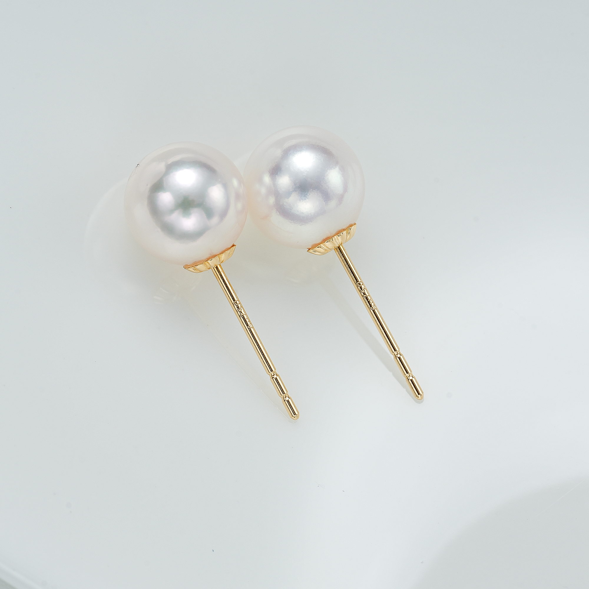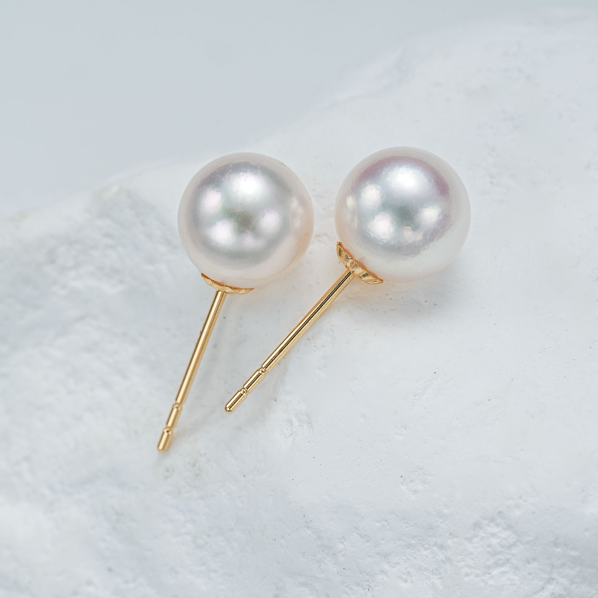 红桥珍珠 海水akoya珍珠素钉耳钉18K金简约百搭