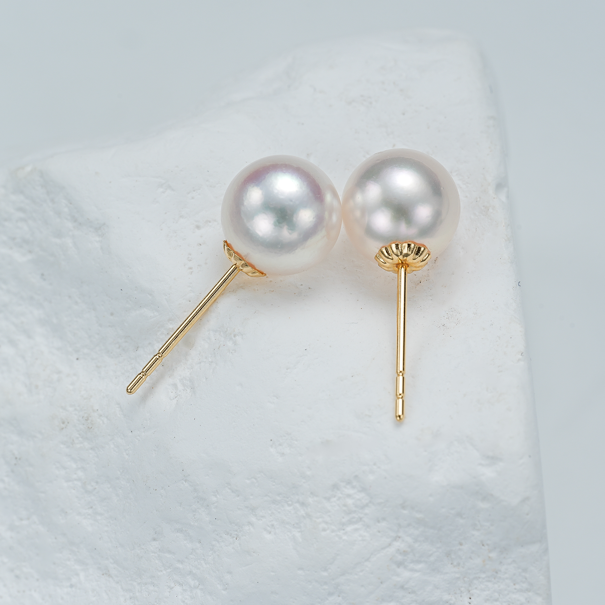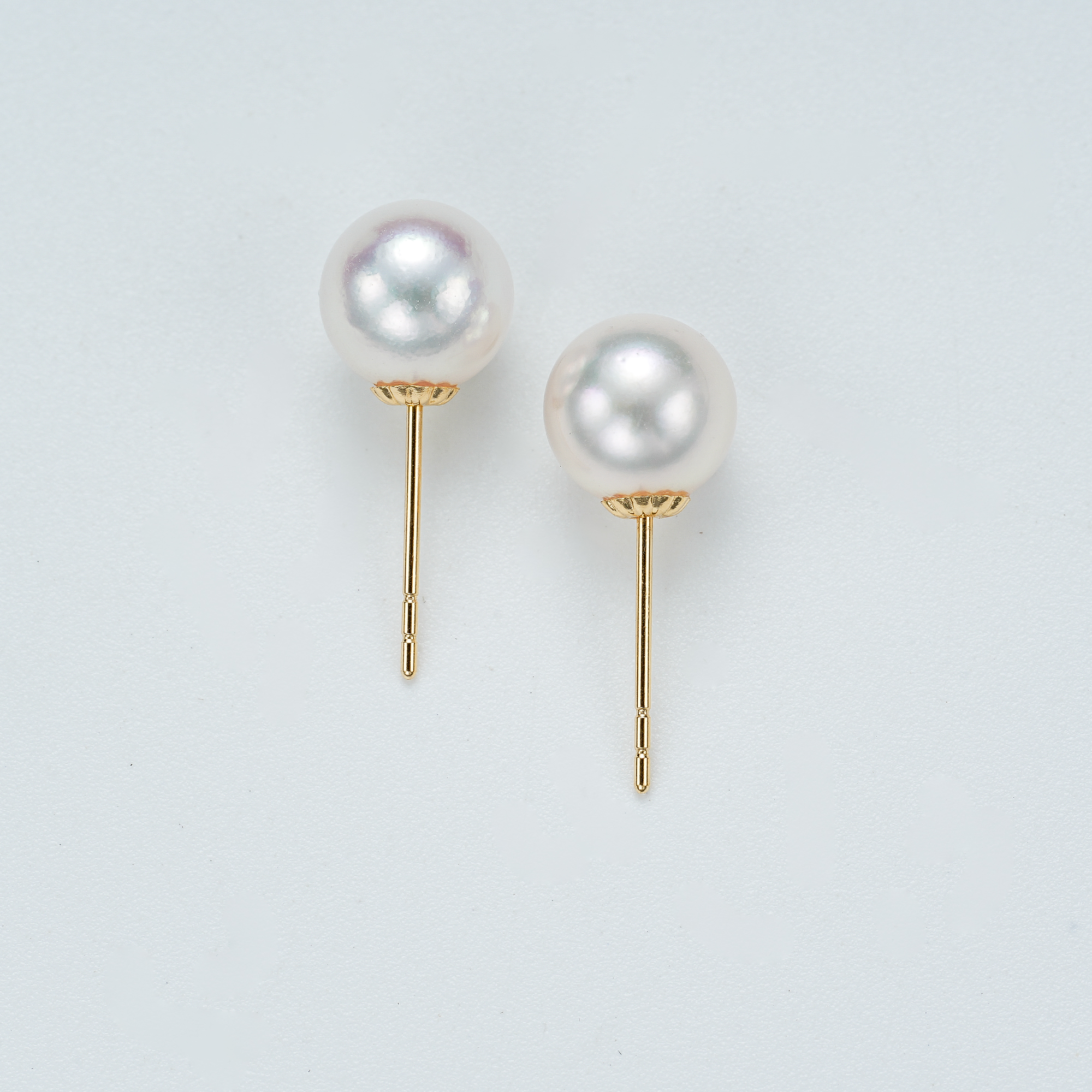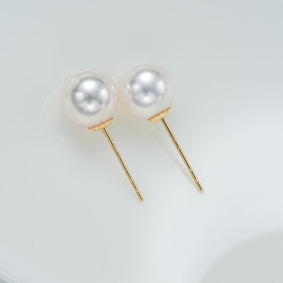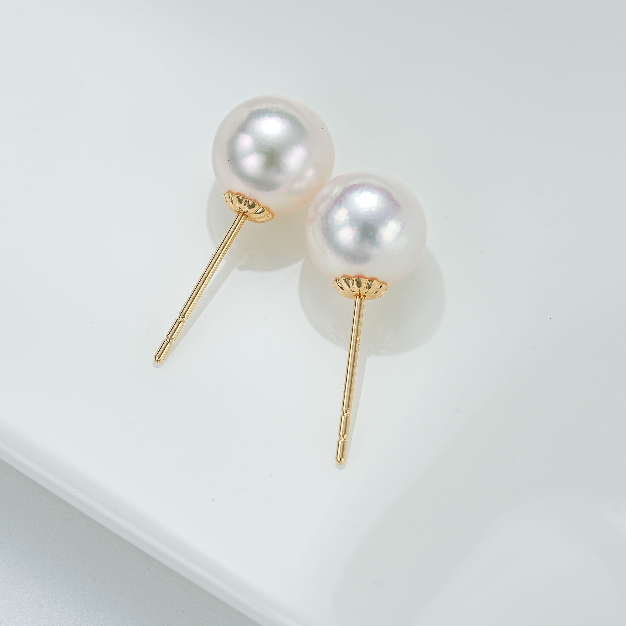 红桥珍珠 海水akoya珍珠素钉耳钉18K金简约百搭