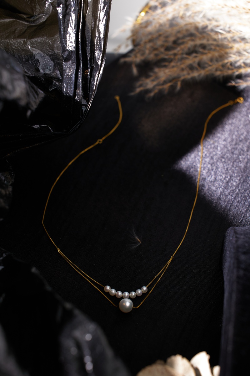 红桥珍珠 海水akoya珍珠项链微笑链18K金双层锁骨链 MTJ017