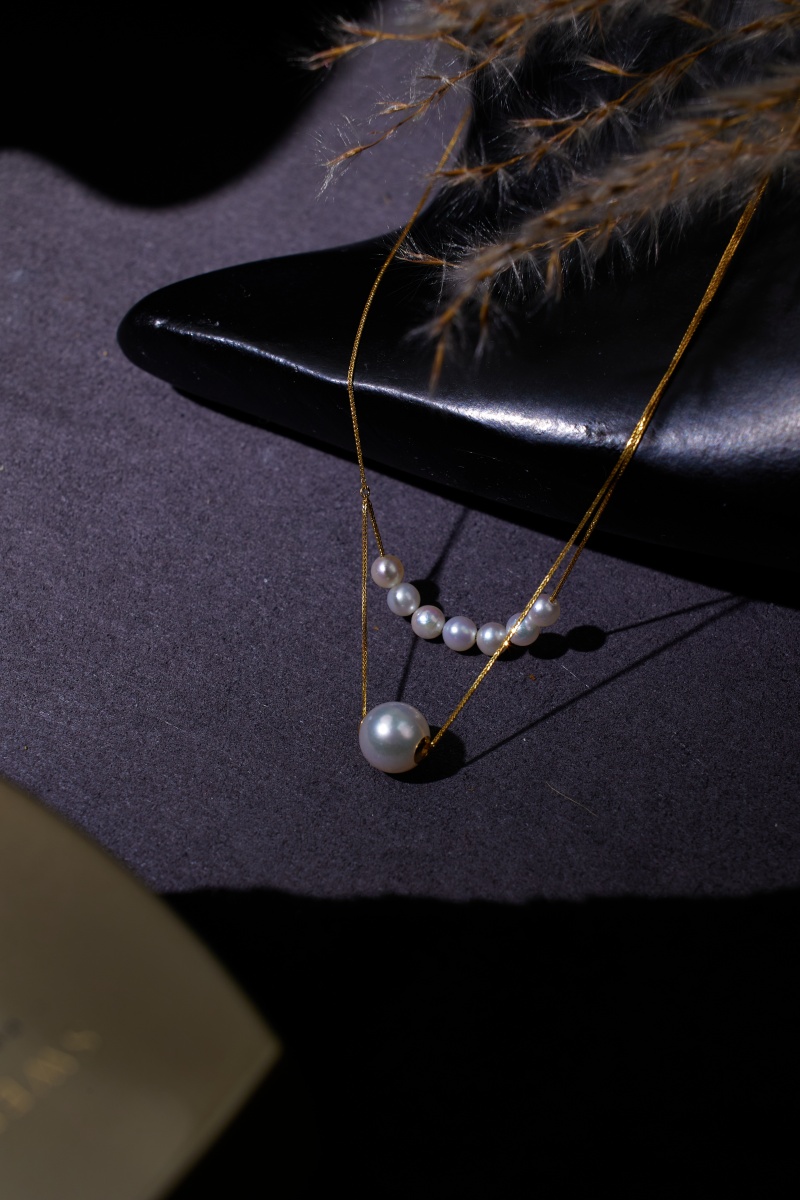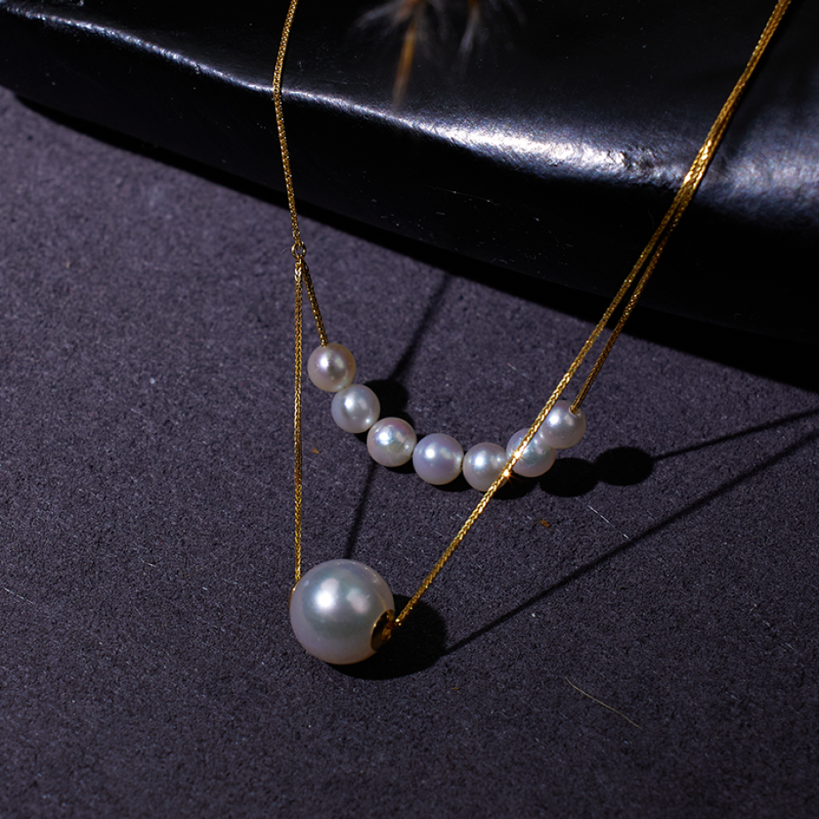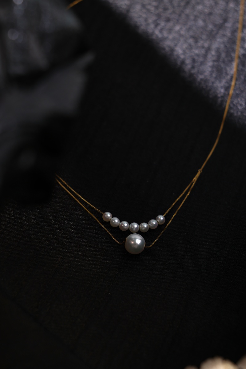 红桥珍珠 海水akoya珍珠项链微笑链18K金双层锁骨链 MTJ017