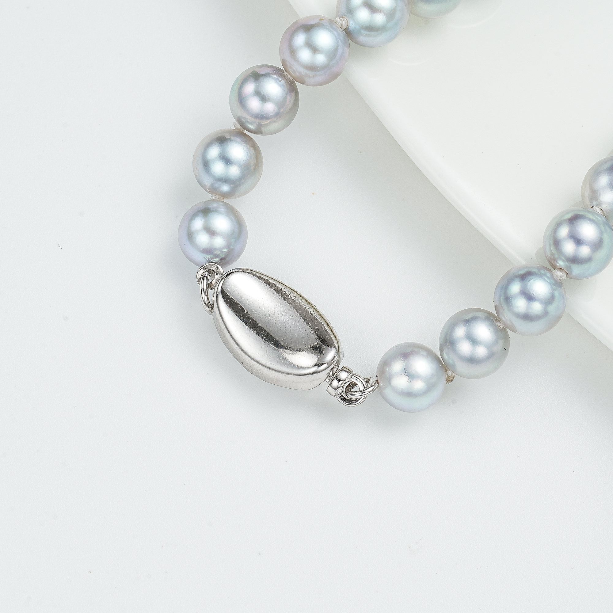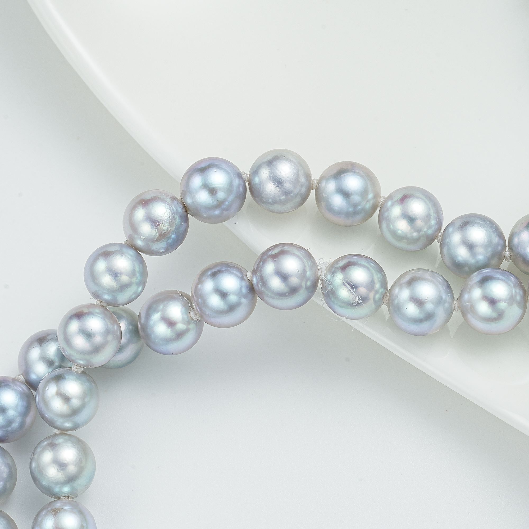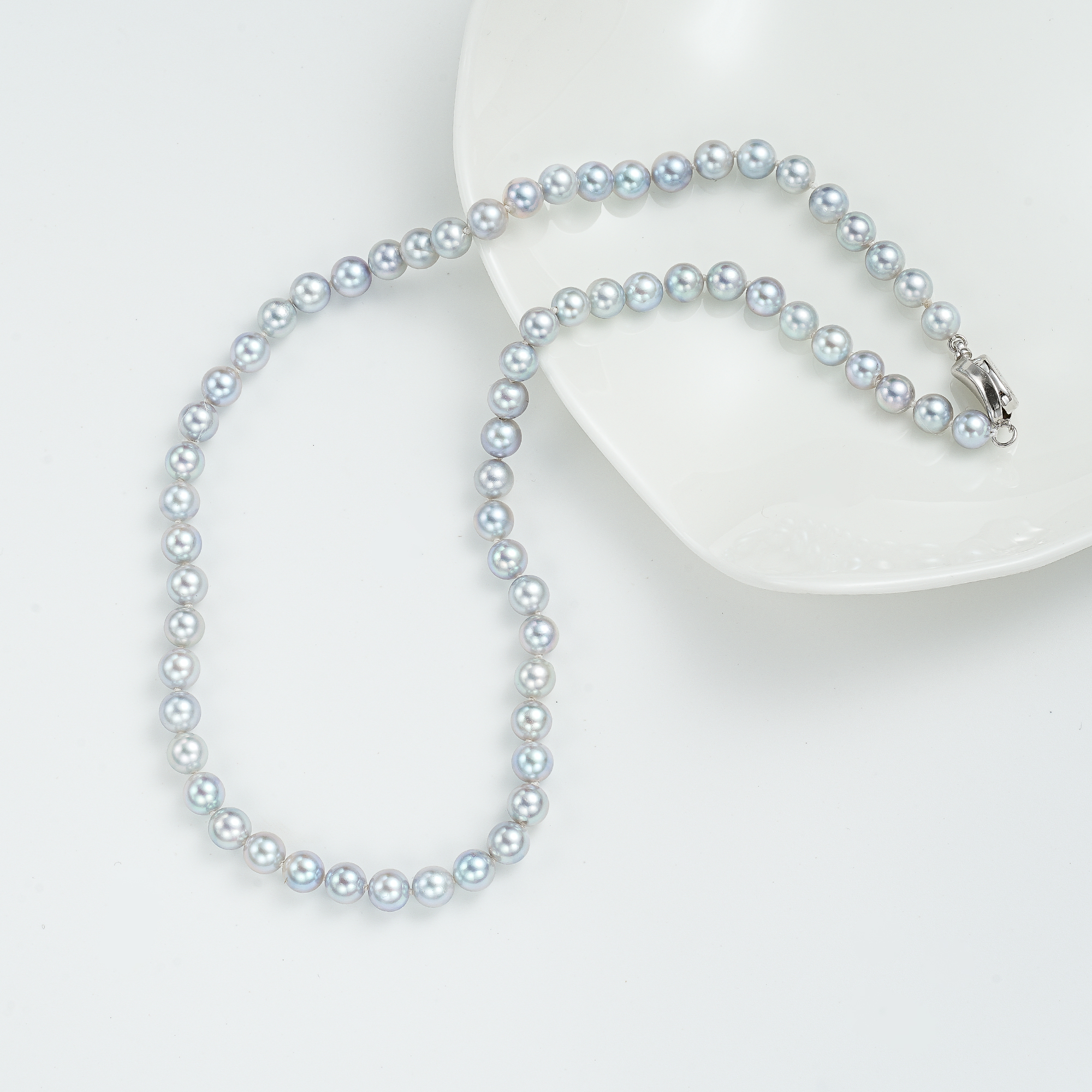 红桥珍珠 海水akoya真多麻银蓝灰色串链项链S925 HQXD-16219