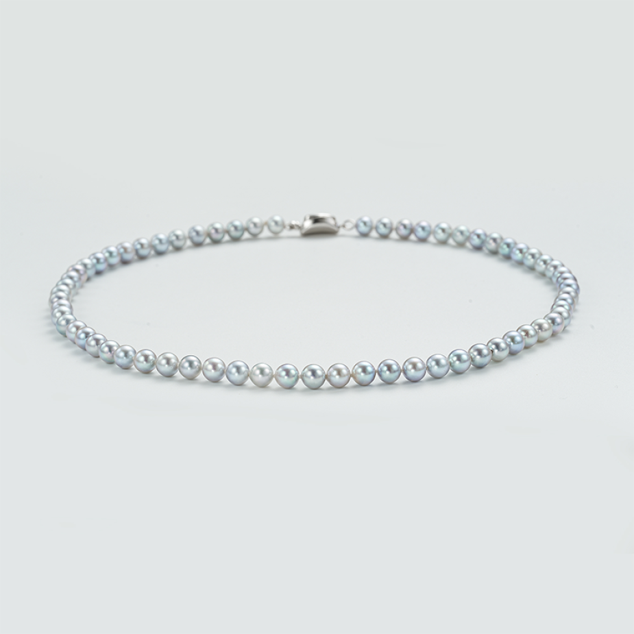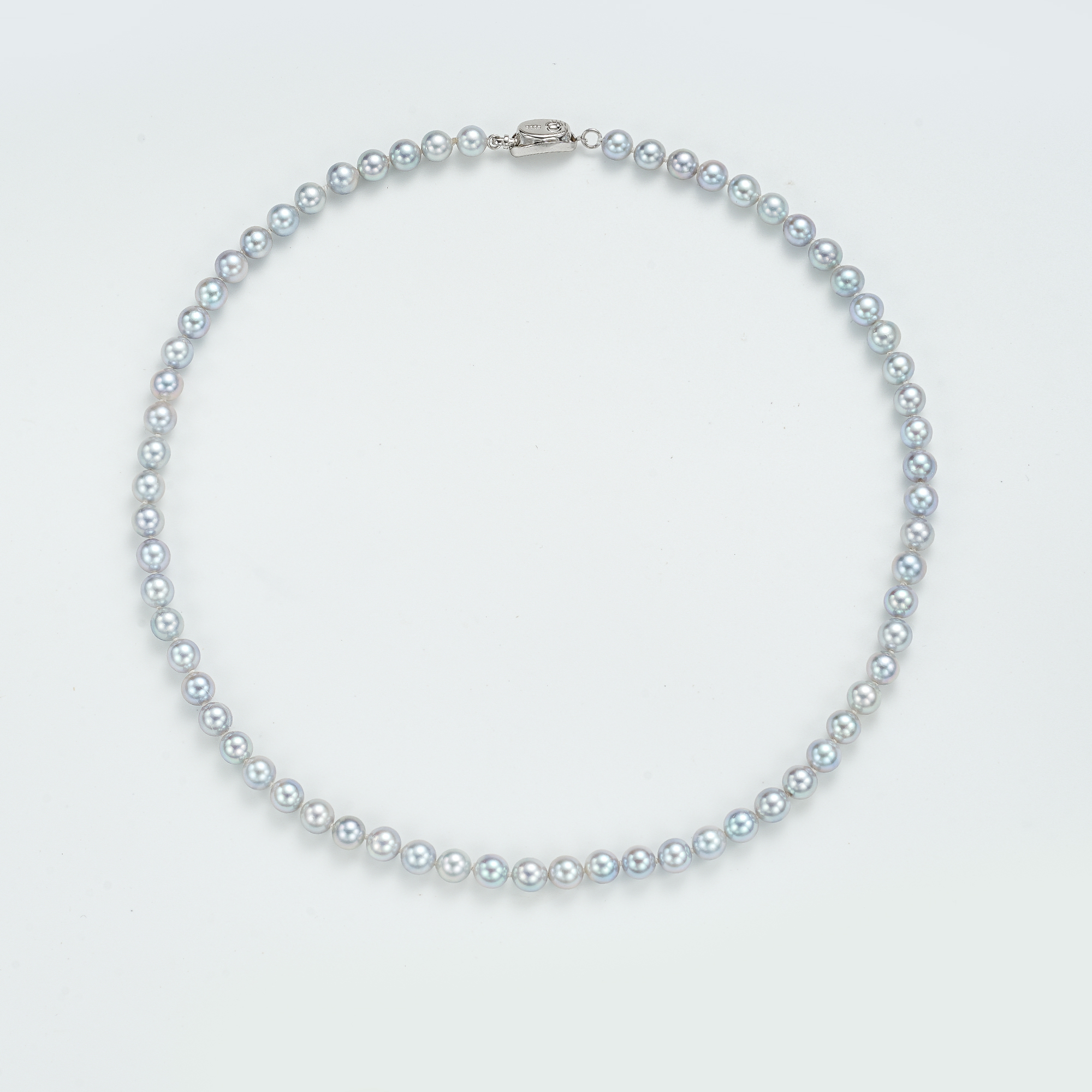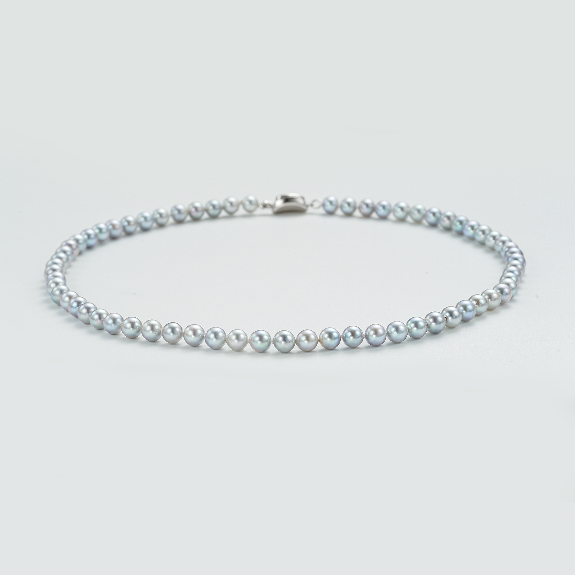 红桥珍珠 海水akoya真多麻银蓝灰色串链项链S925 HQXD-16219