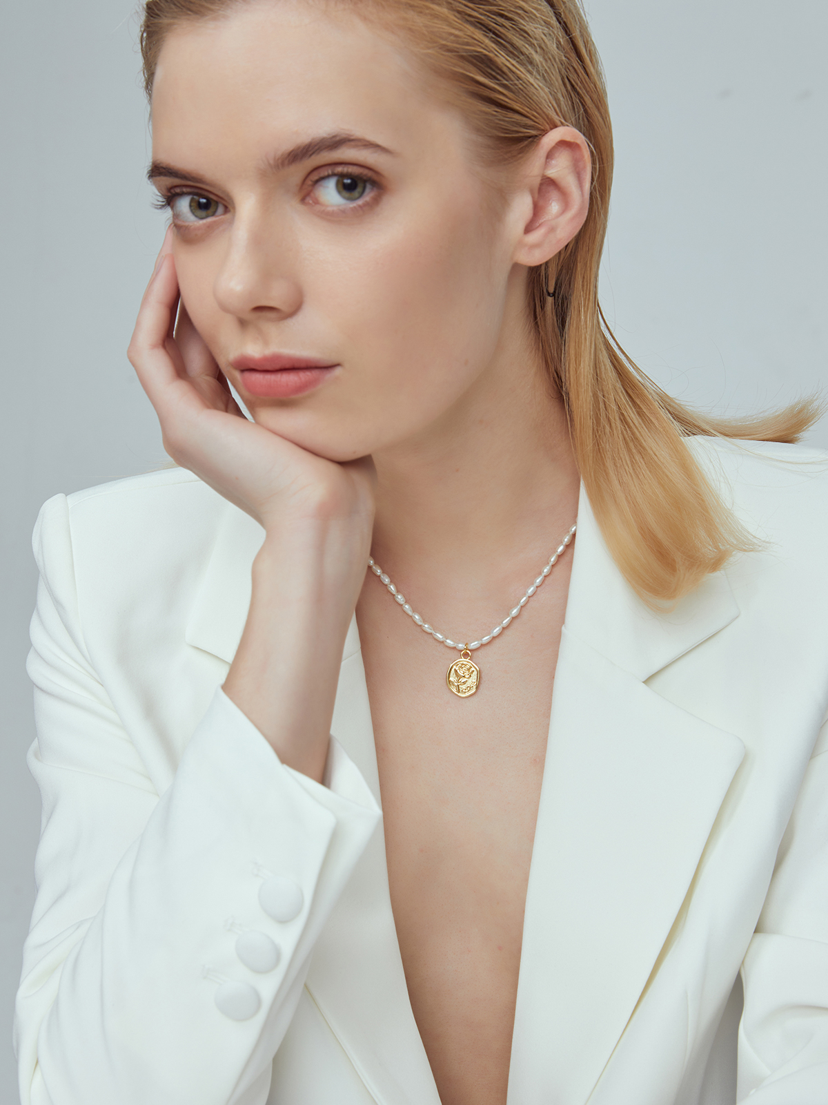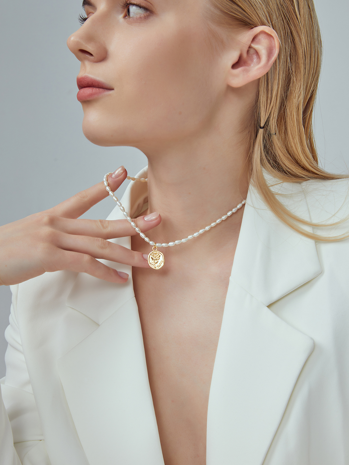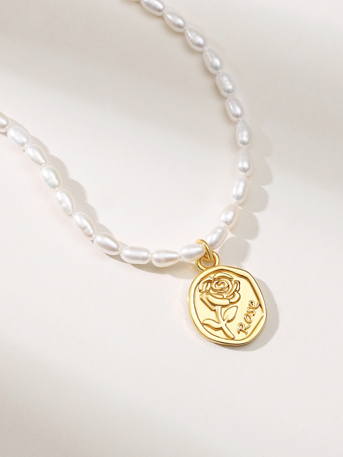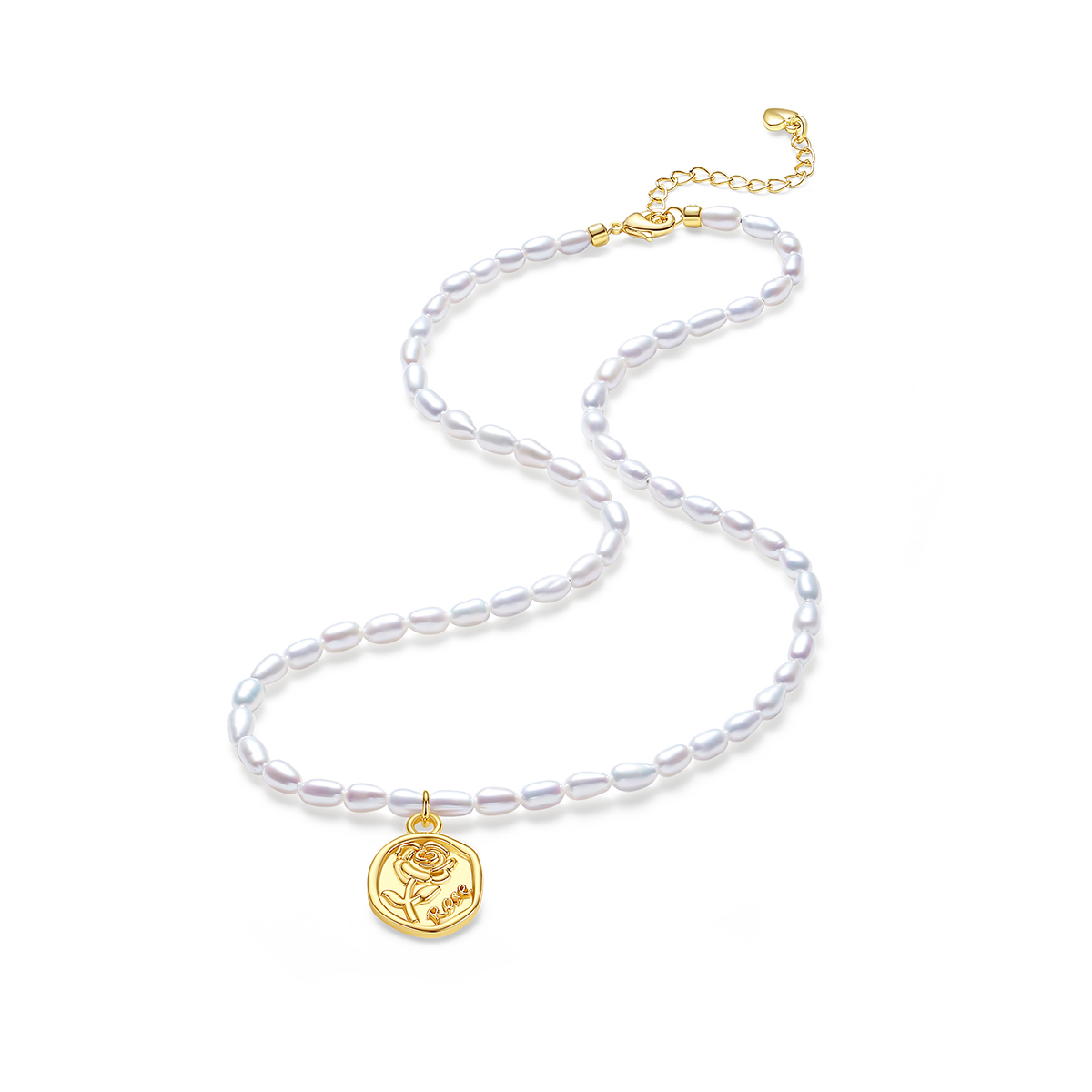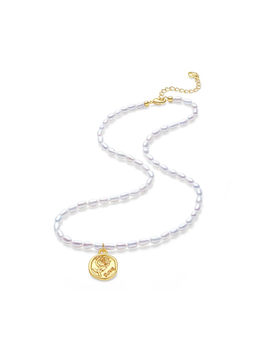 红桥珍珠 淡水无核米型珠合金玫瑰珍珠项链INS穿搭 HQXL001QD