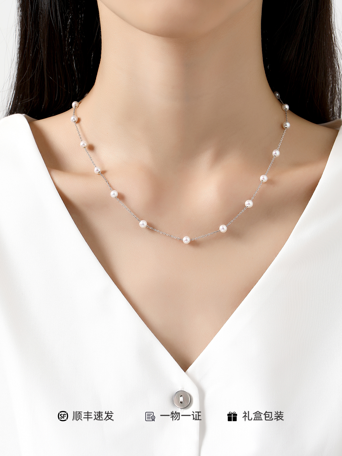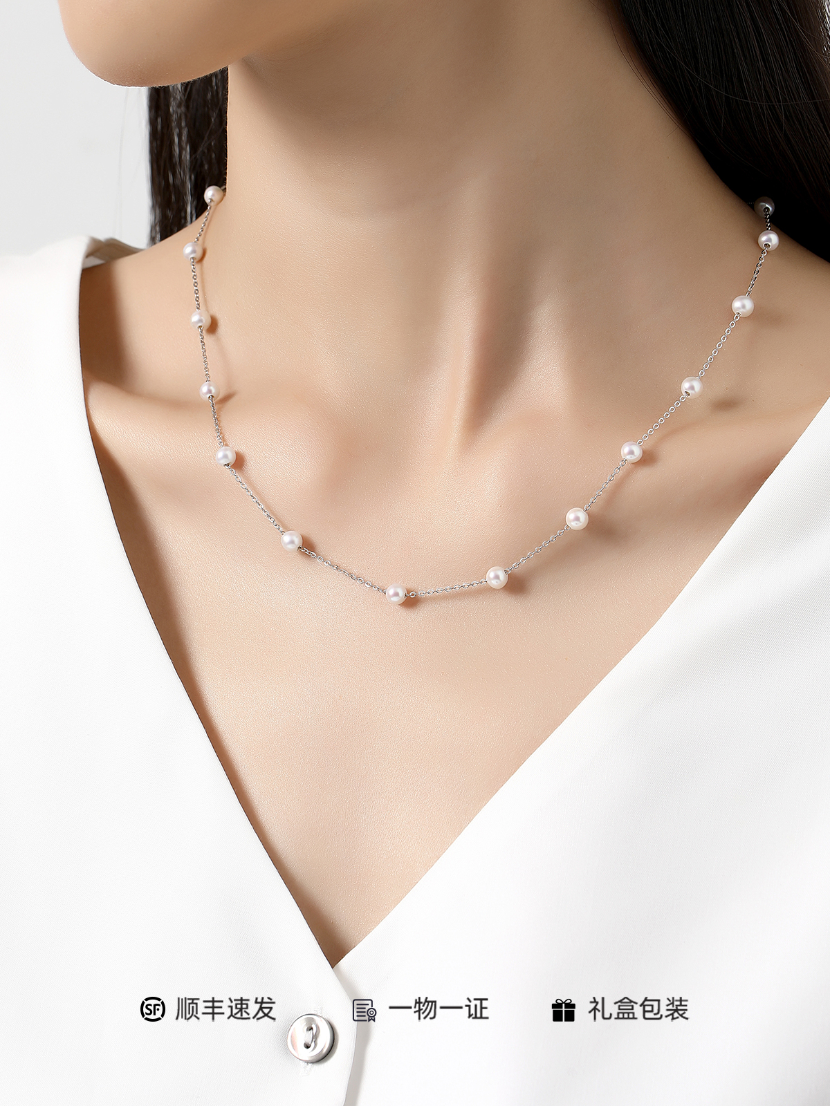 | Necklace length: 45cm; Pearl diameter: 4-5mm; Color classification: white; |