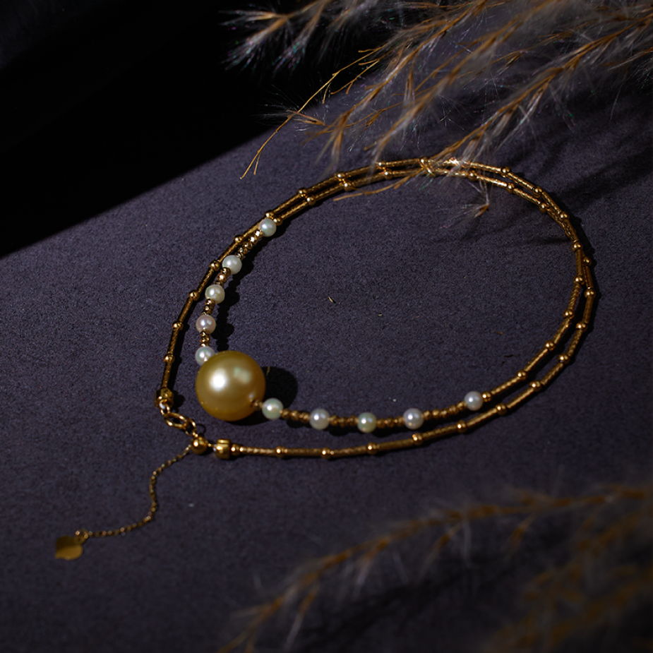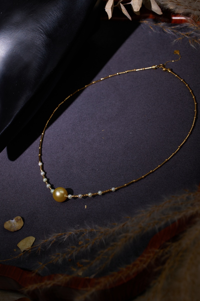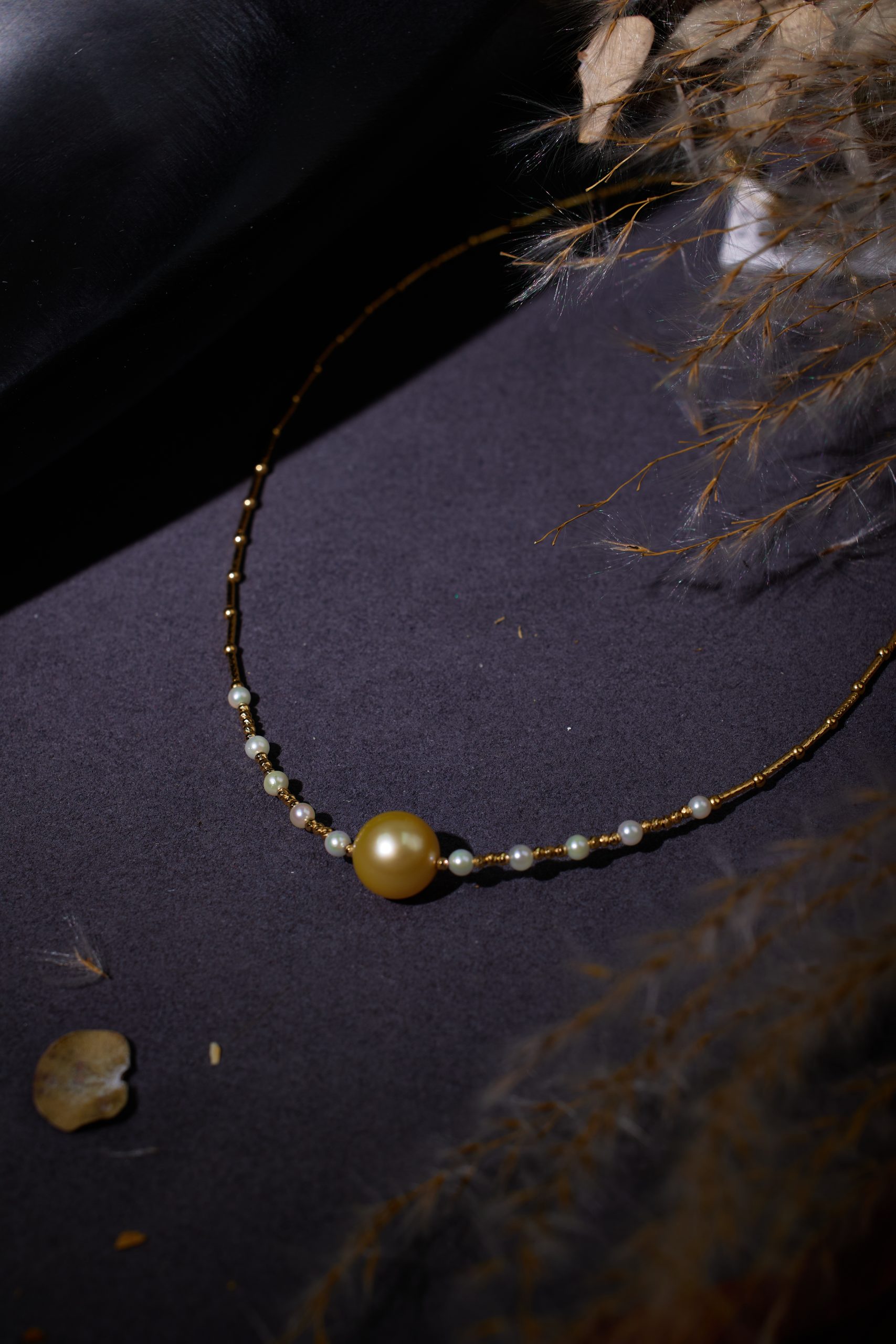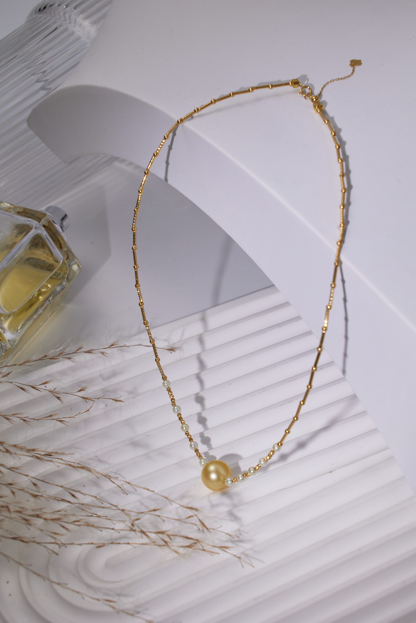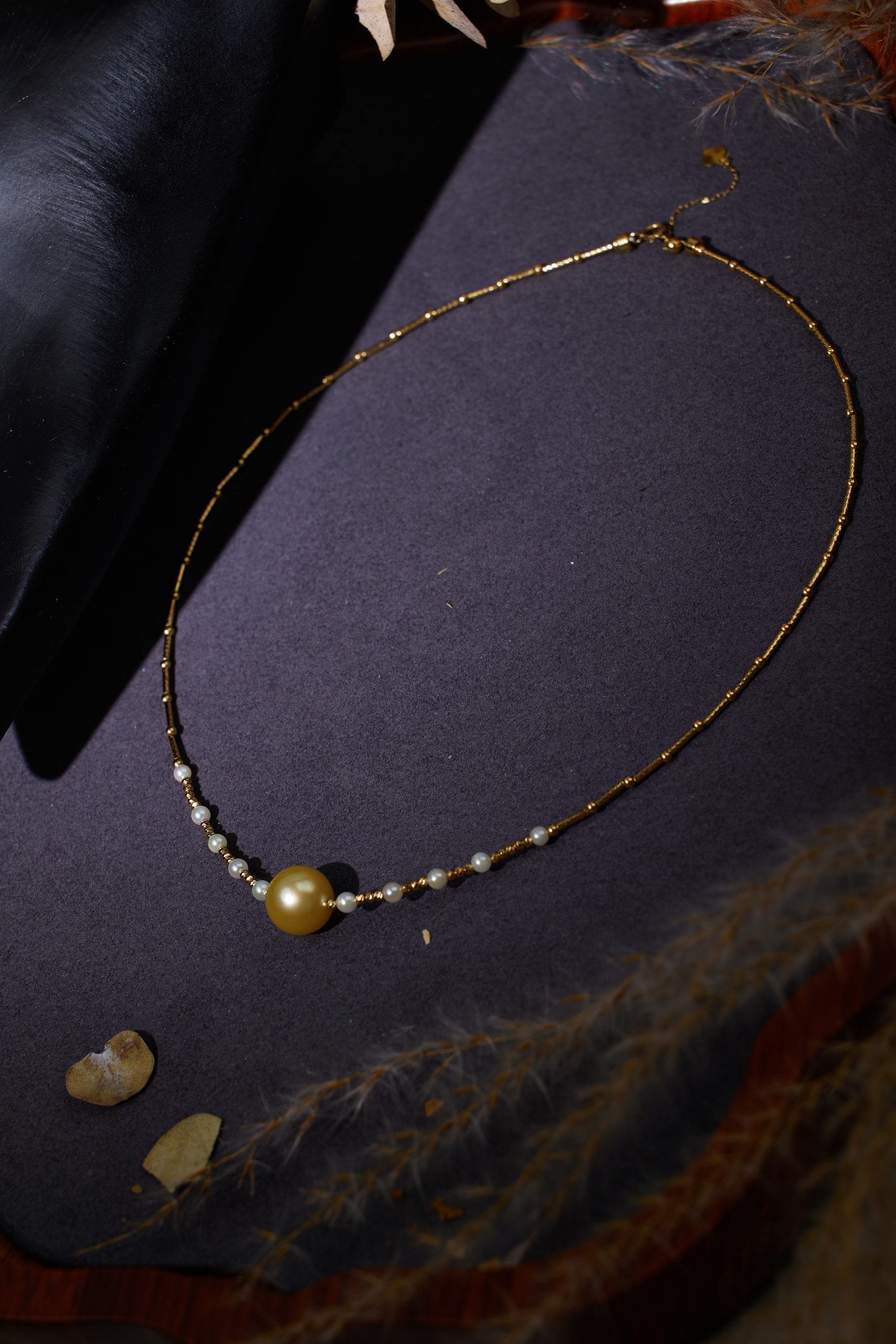 | Pearl diameter: 3-12mm; Color classification: golden&white; Necklace length: 42.5cm; |