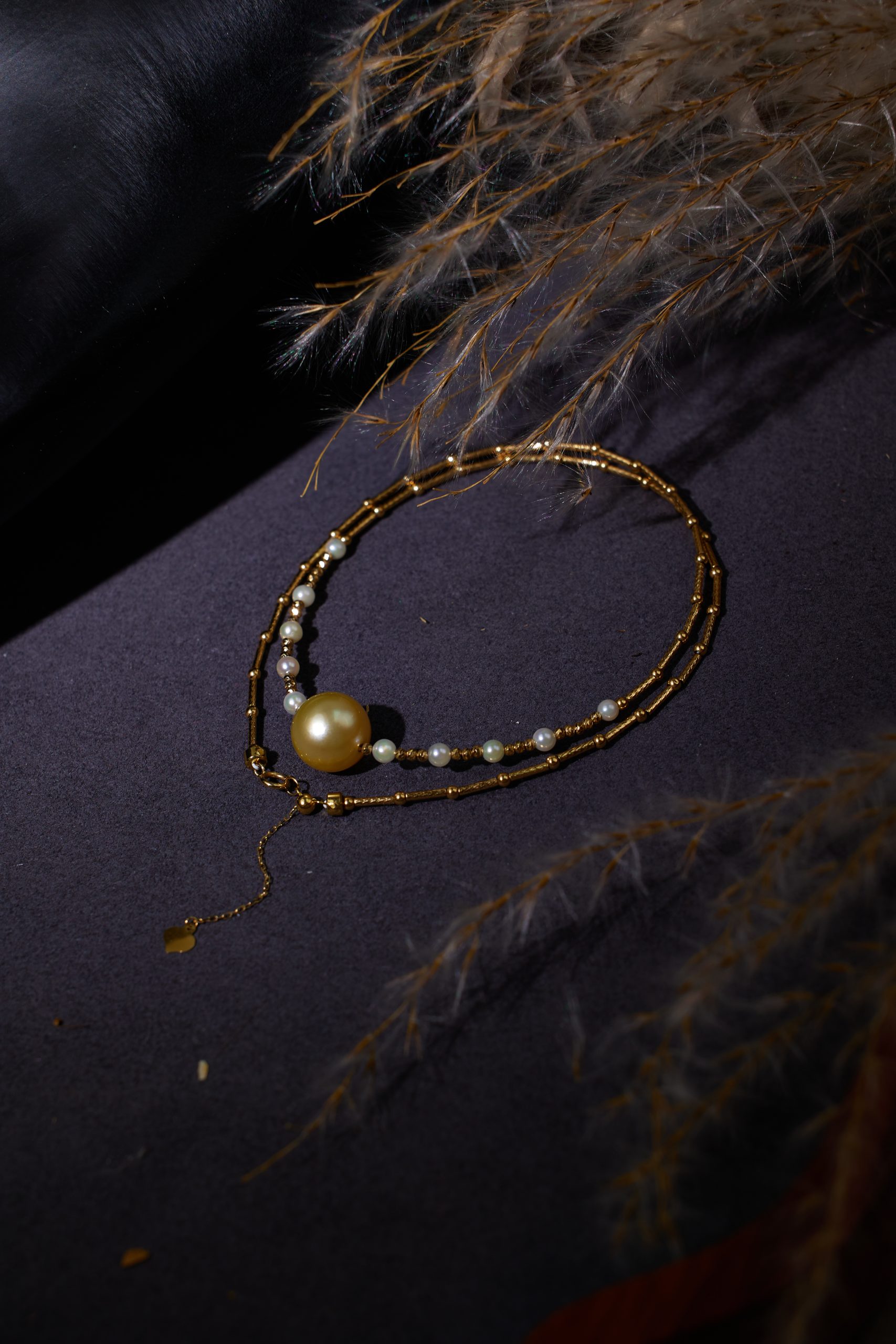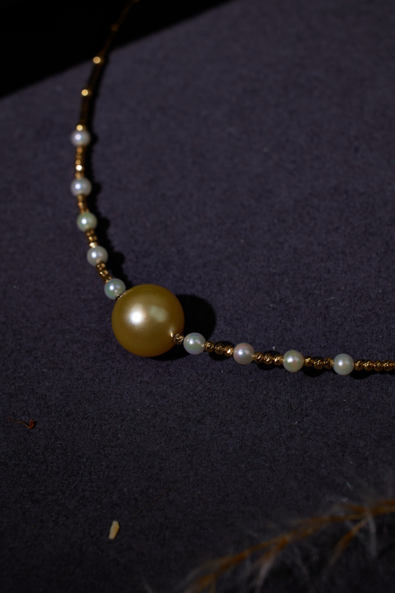 Hongqiao Pearl, Golden South Sea Pearl & AKOYA Pearl Combination Style Necklace, 18k Gold P685