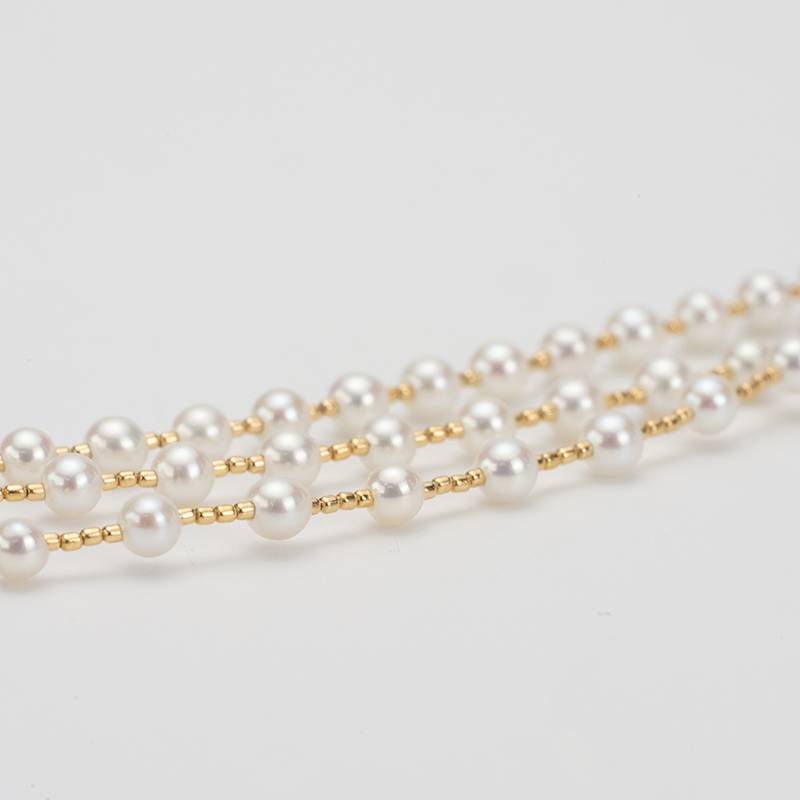 红桥珍珠 繁星系列 18K金淡水珍珠项链三层叠戴搭配