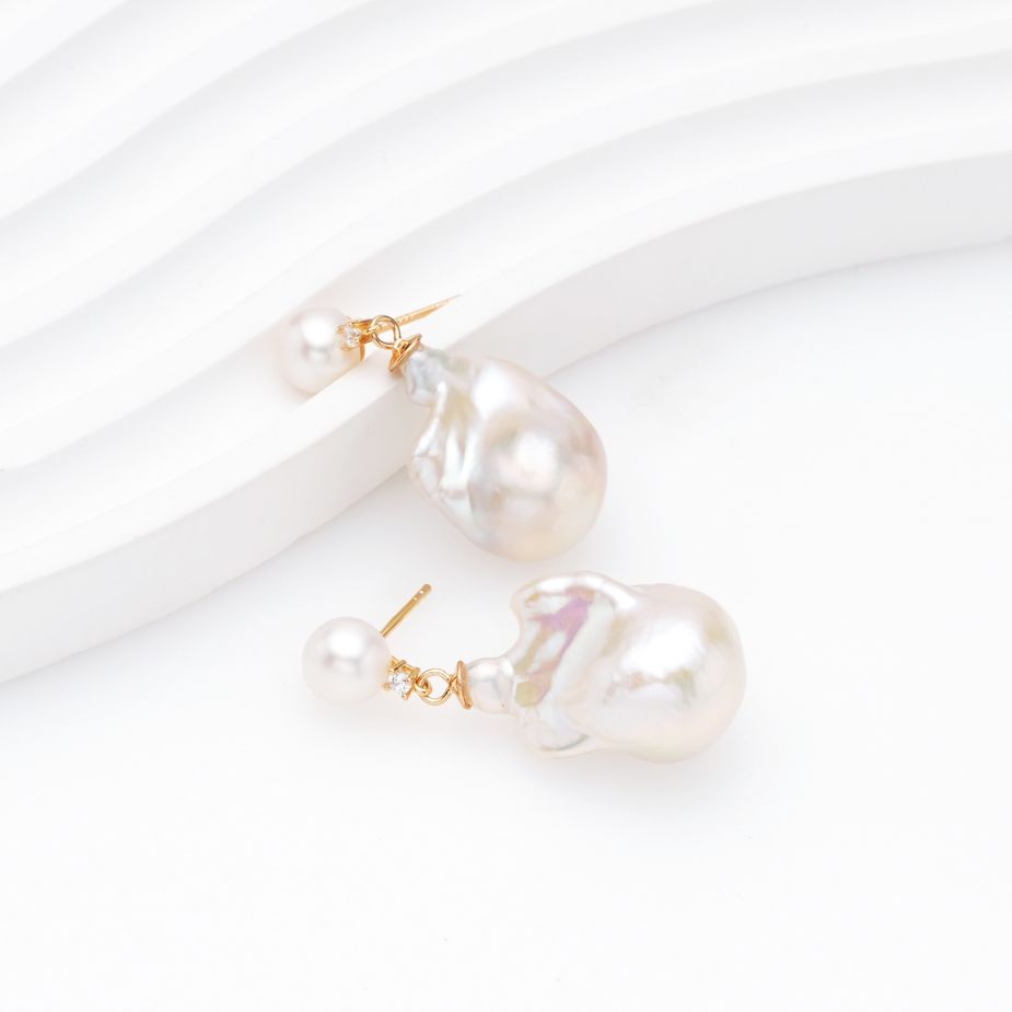 Hongqiao Pearl, Freshwater Baroque Pearl with Nucleus, Irregular Shape, S925 Silver C1205