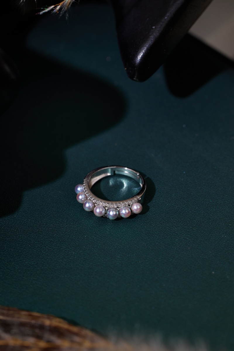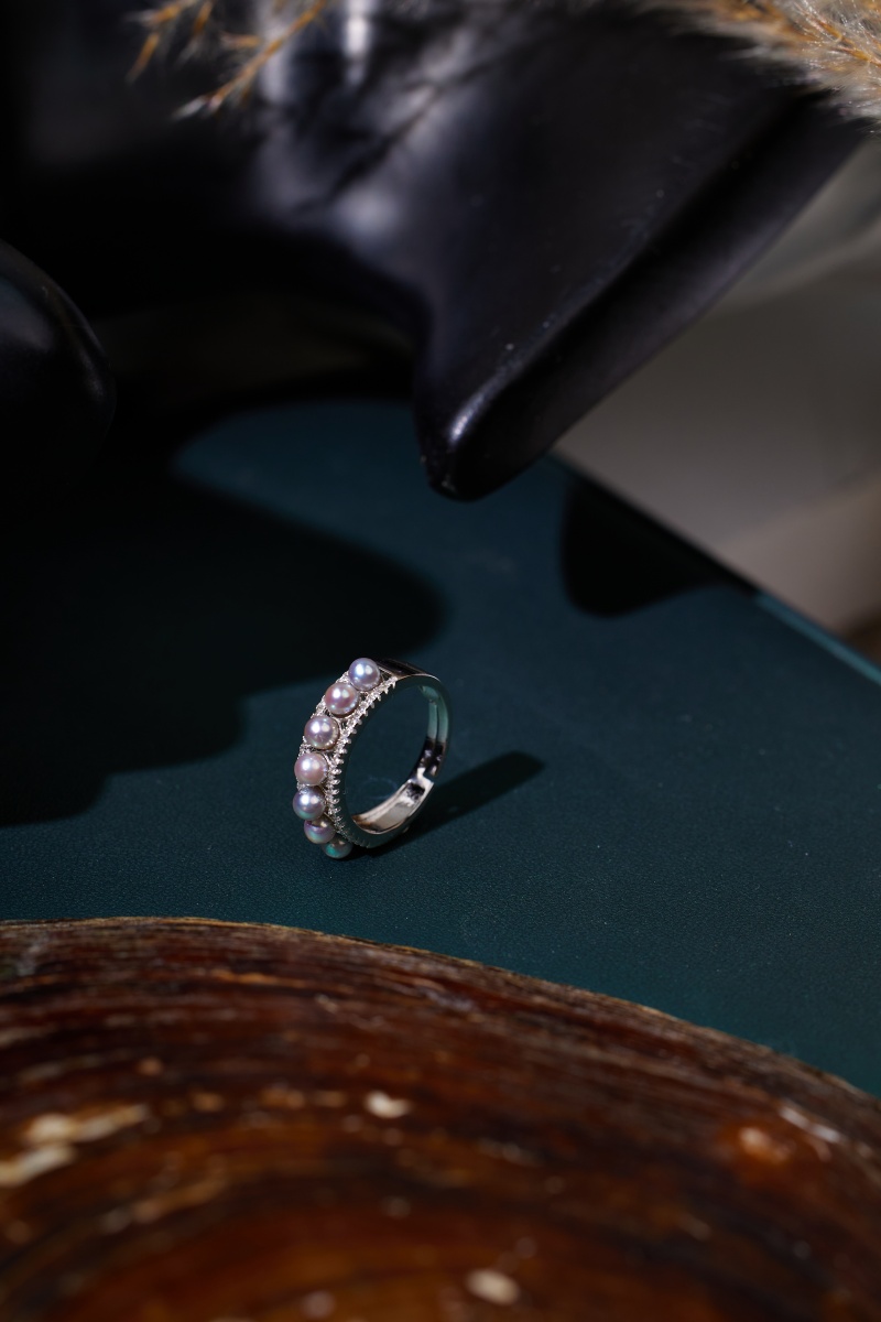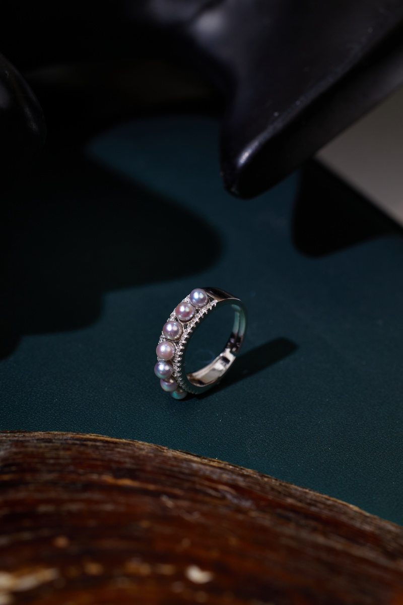 Hongqiao Pearl, Akoya Pearl Silver-Blue Gray Single-Row Ring, Night Sky Stars Series, S925 Silver 23003829043