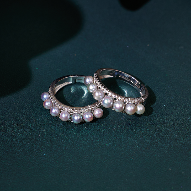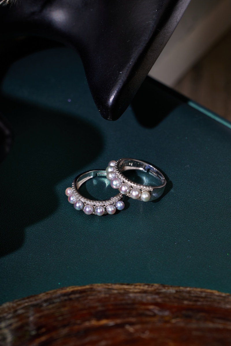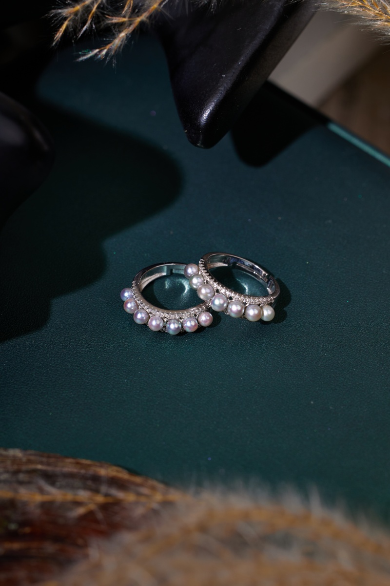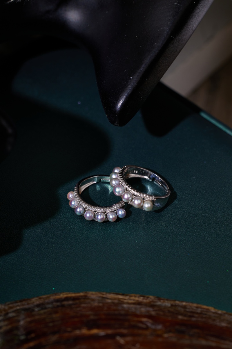 Hongqiao Pearl, Akoya Pearl Silver-Blue Gray Single-Row Ring, Night Sky Stars Series, S925 Silver 23003829043