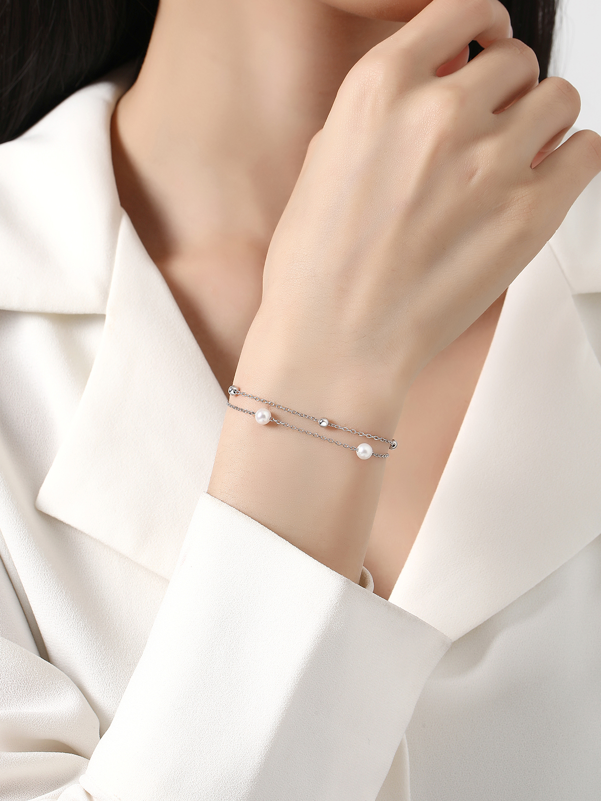 Hongqiao Pearl, Freshwater AK Pearl Double-Layer Bracelet, Star Series, S925 Silver HQSL003DS