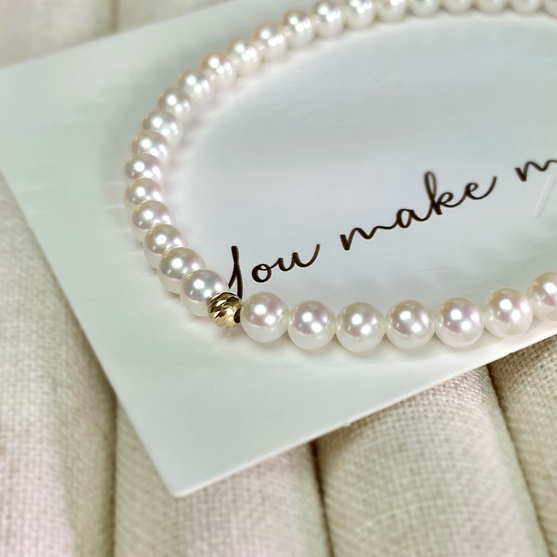 Hongqiao Pearl, Freshwater AK Rice-Shaped Pearl & Small Golden Bean Elastic Rope Bracelet, 18K Gold HQKS1819001