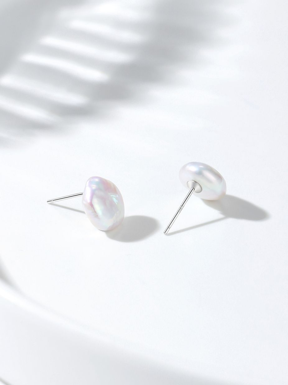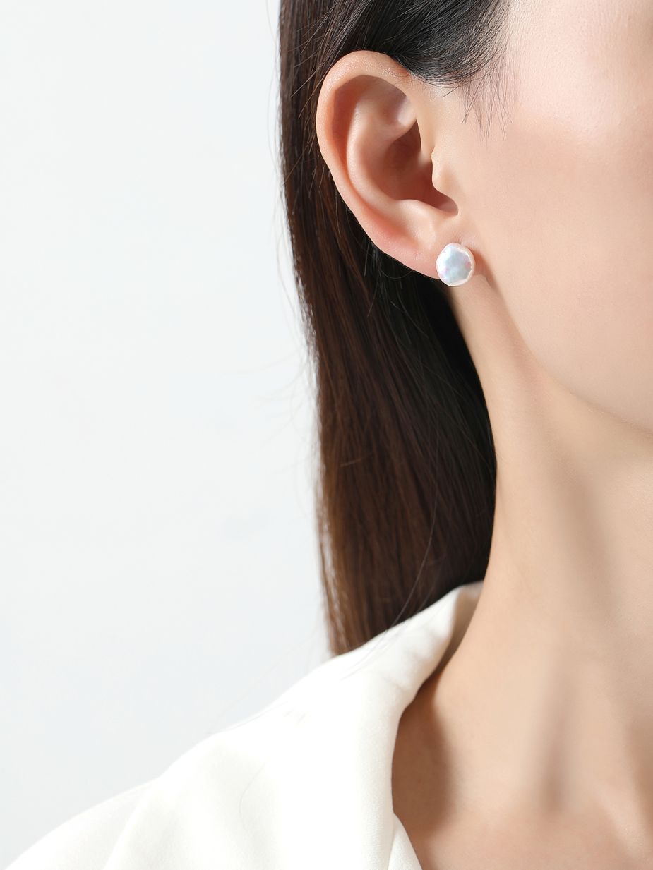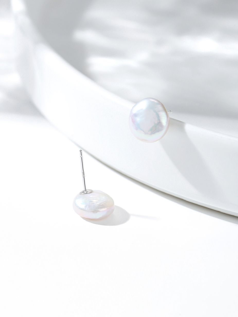 Hongqiao Pearl, Freshwater Flat Pearl Earrings, S925 Silver HQES03TZ