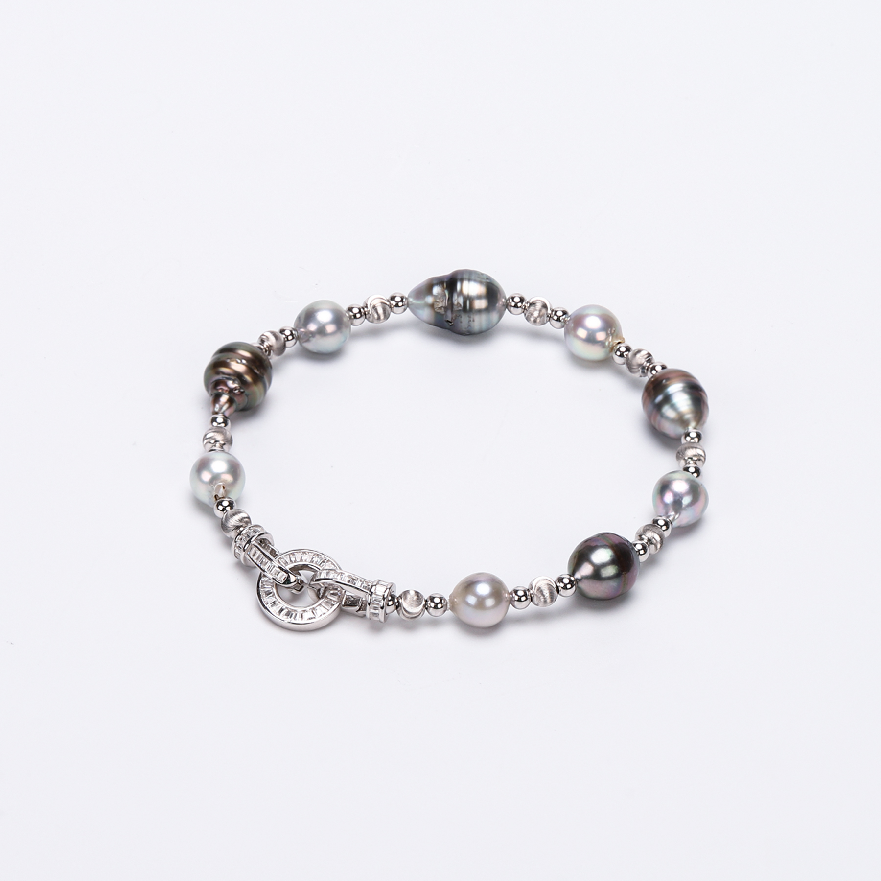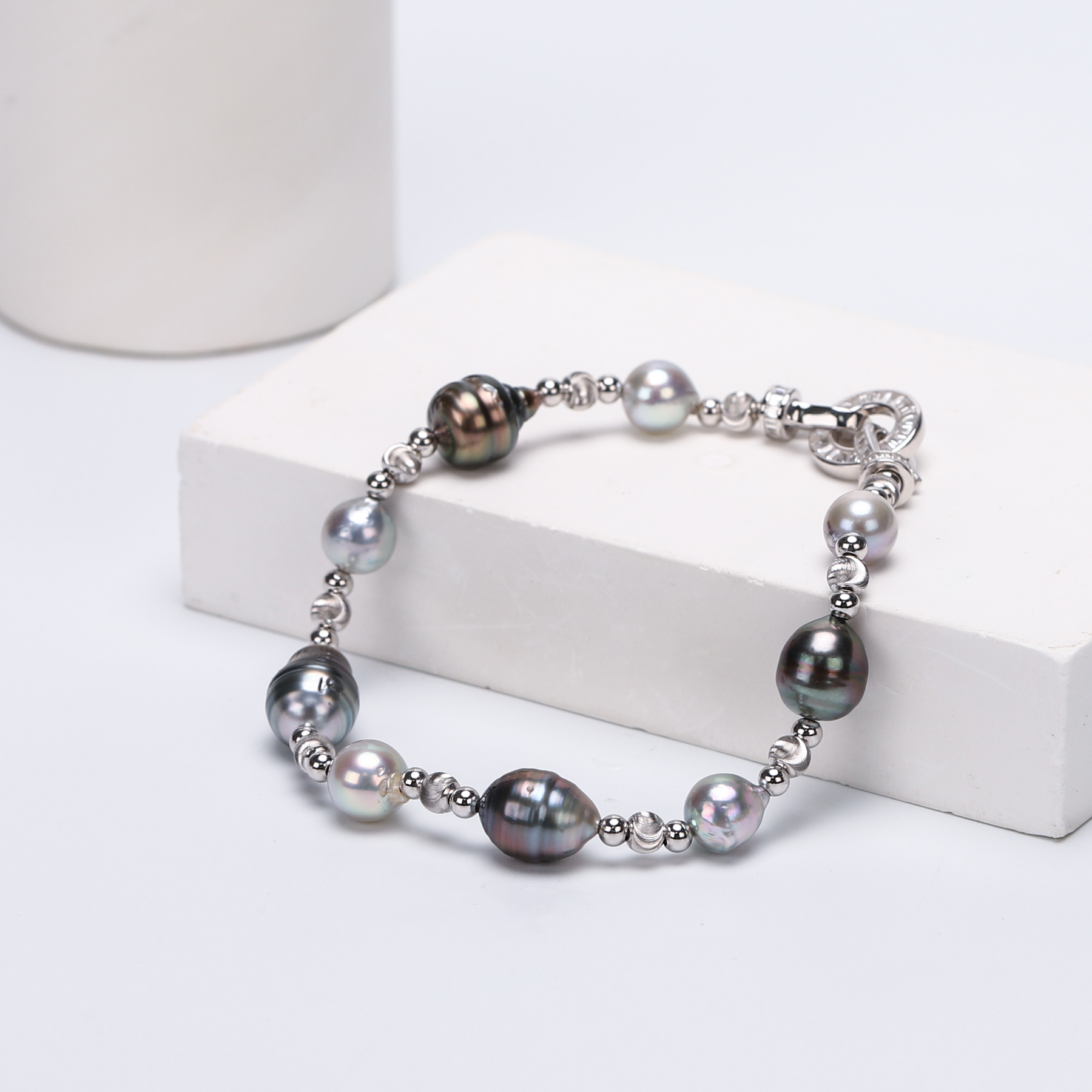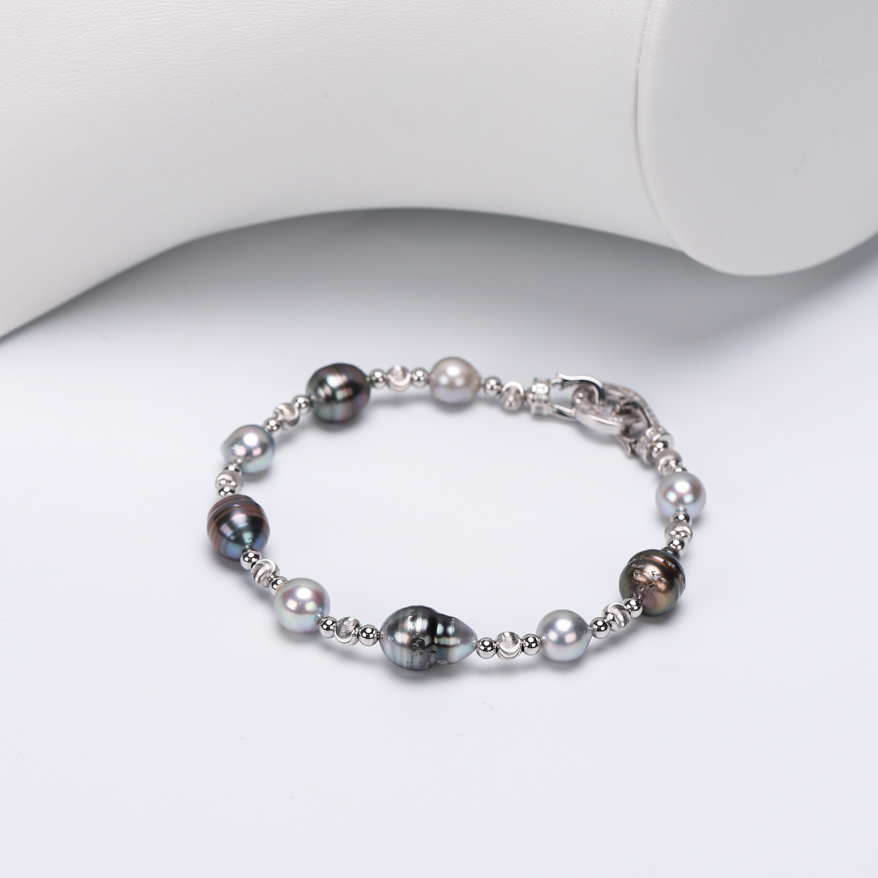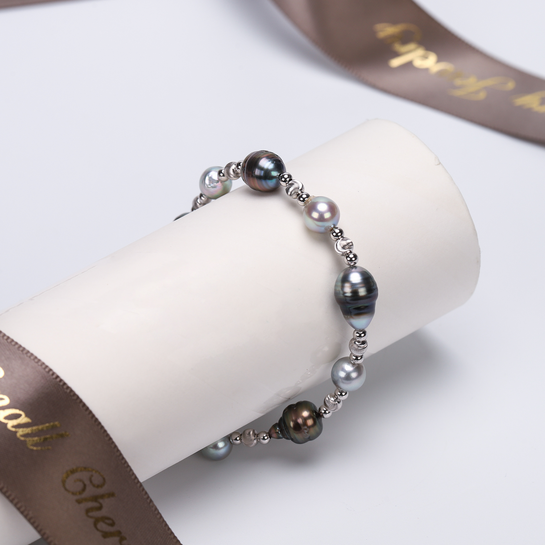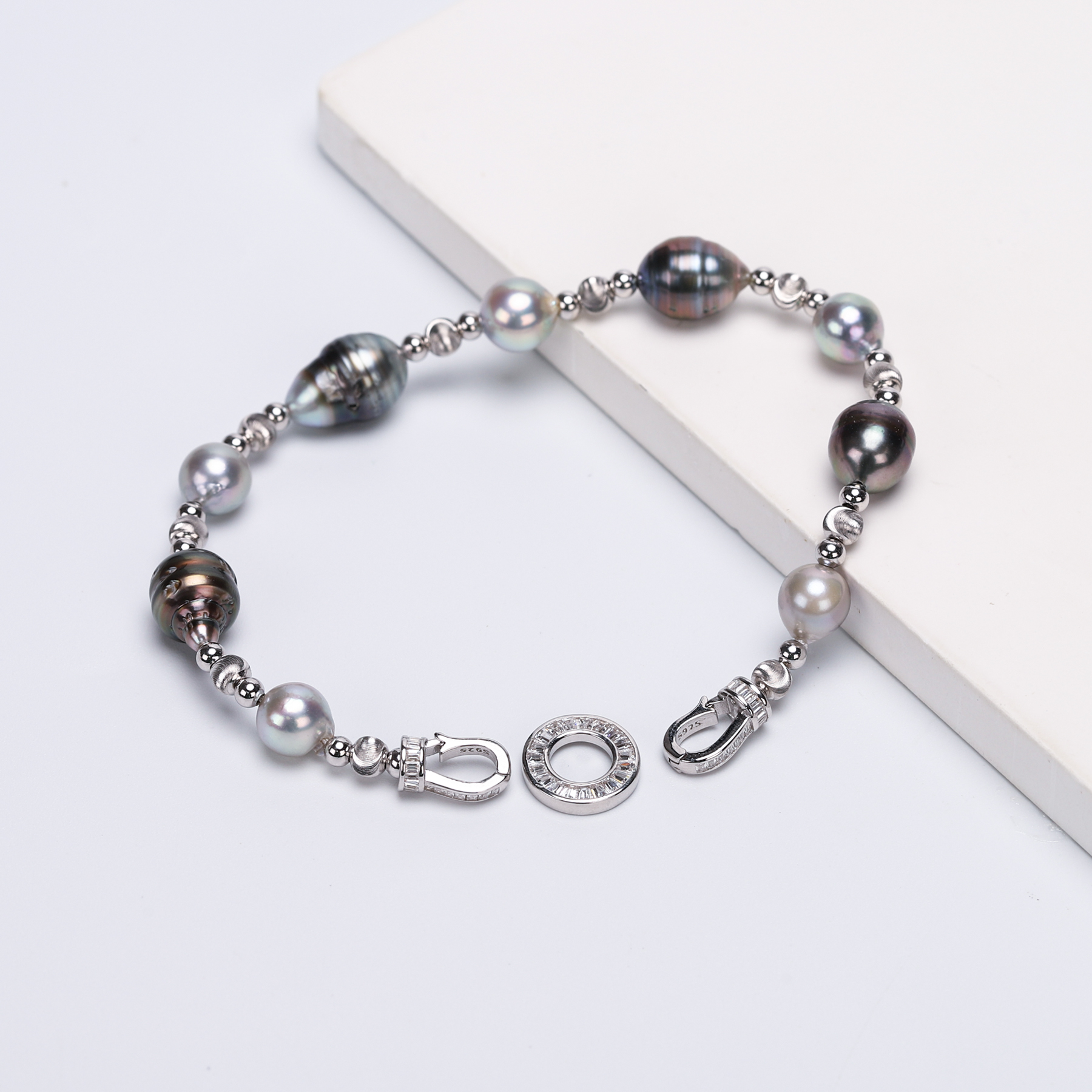 Hongqiao Pearl, Tahitian Pearl & Akoya Threaded Pearl Bracelet, S925 Silver DW896